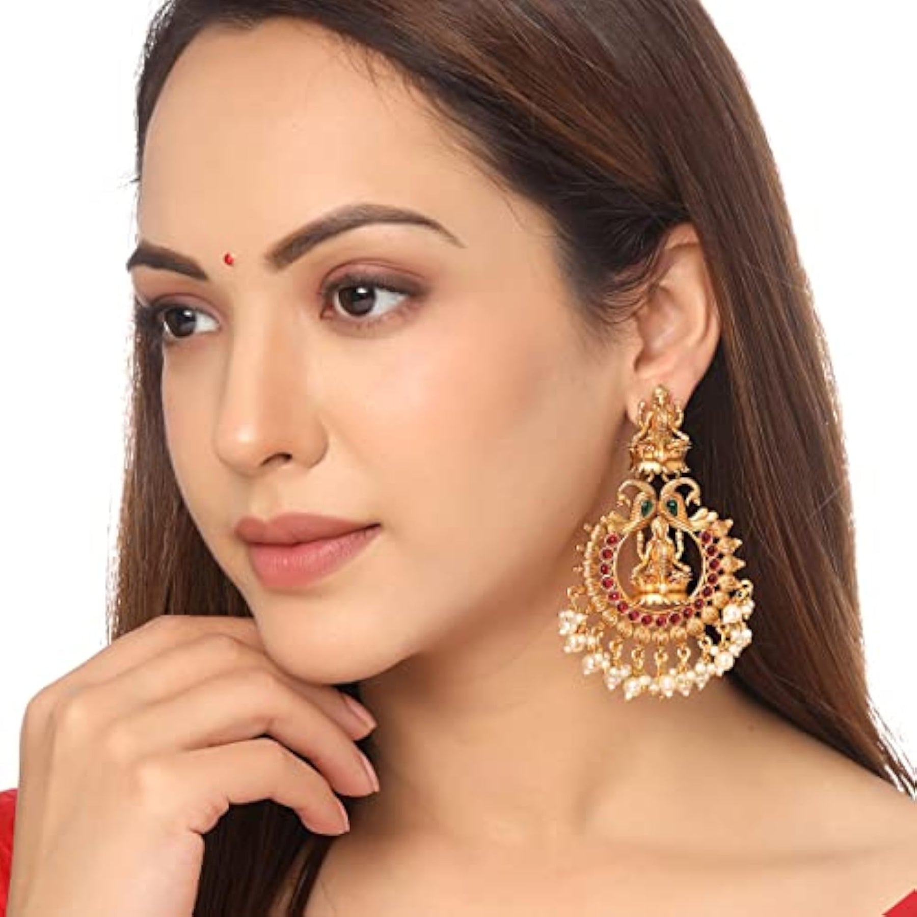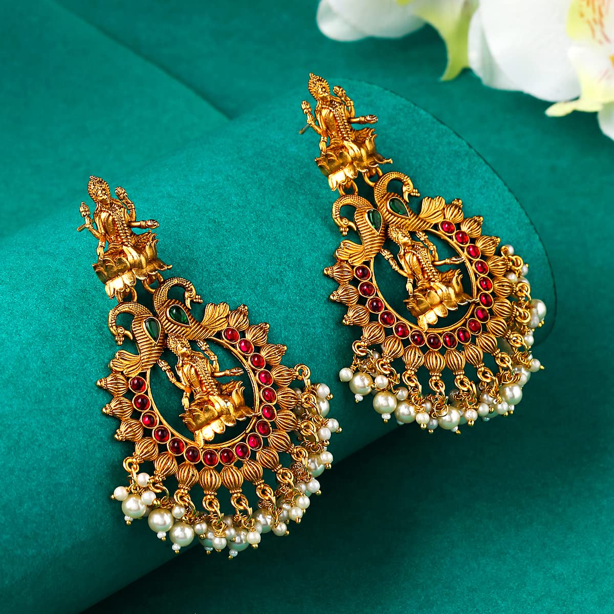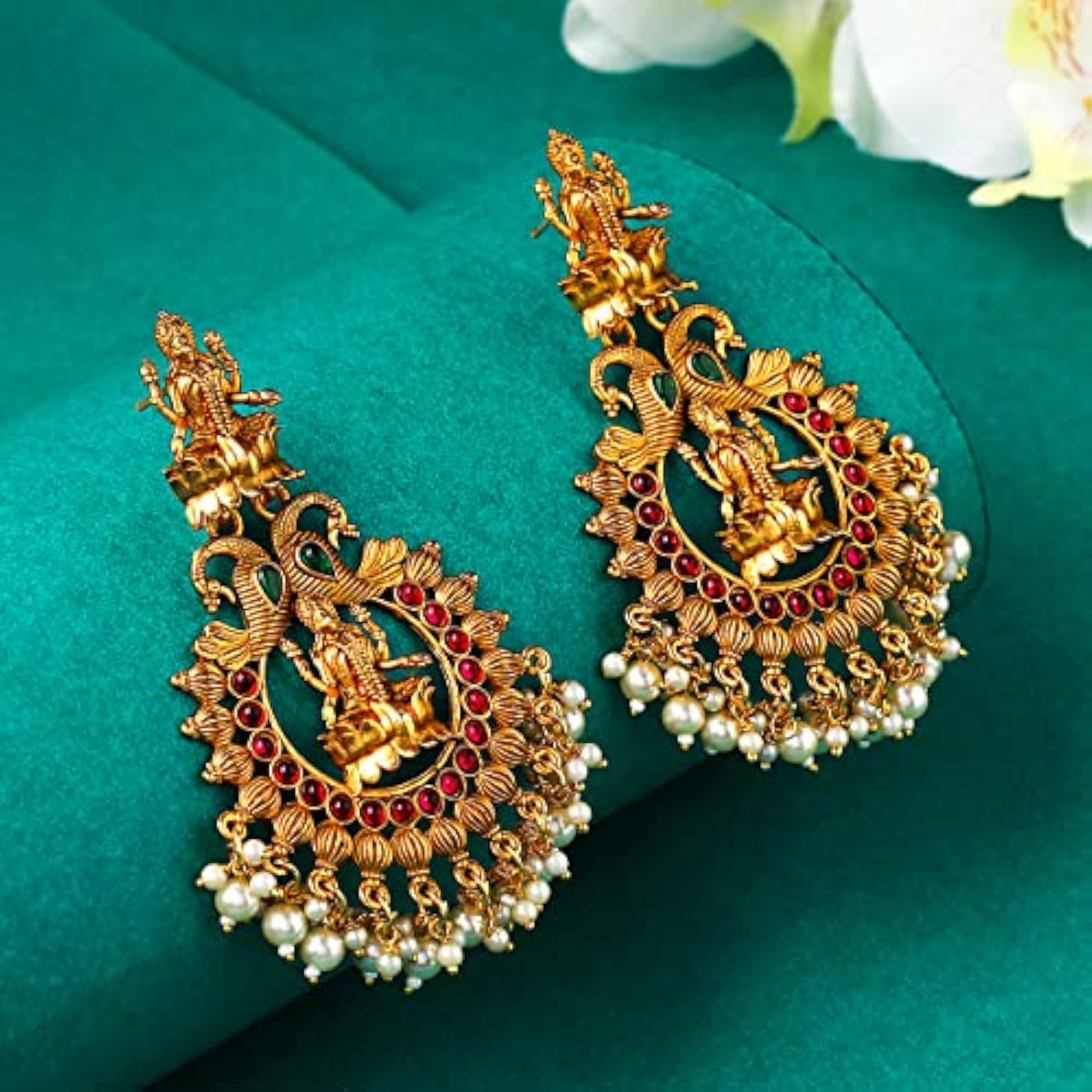 These beautiful earrings are perfect for traditional occasions like birthdays, anniversaries, or as a gift for your wife. They feature a stunning design with intricate temple patterns.