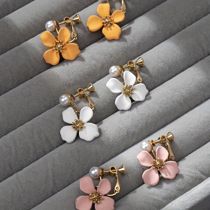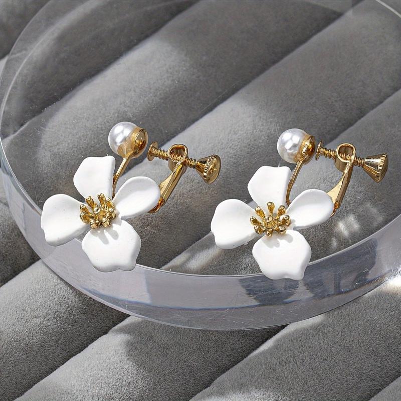 Add a touch of countryside charm with these sweet faux pearl flower clip-on earrings. Perfect for festivals, birthdays, dates, weddings, and parties.