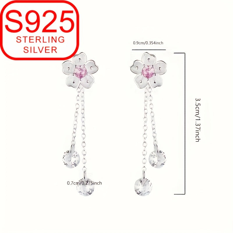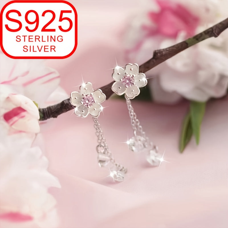 Elevate your style with these elegant cherry blossom tassel stud earrings. Made of hypoallergenic 925 silver, perfect for daily wear or special occasions.