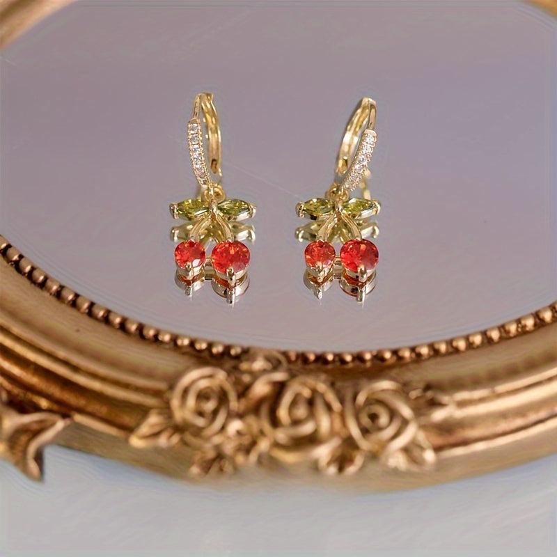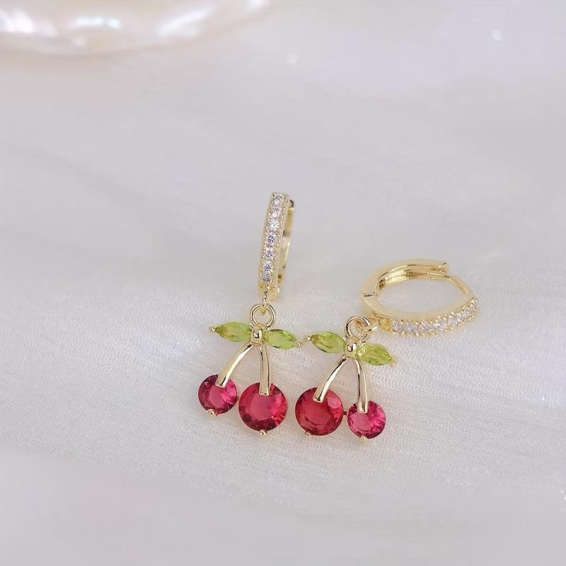 Add a touch of charm to your outfit with these cherry-shaped dangle earrings. They are crafted with rhinestones for that extra sparkle. Perfect for daily wear or special occasions like banquets and parties. Makes a great gift for a loved one.