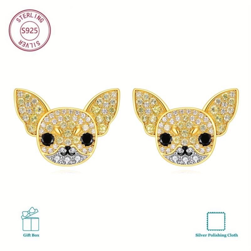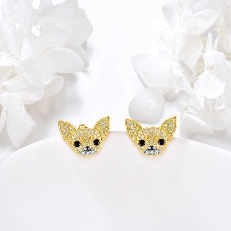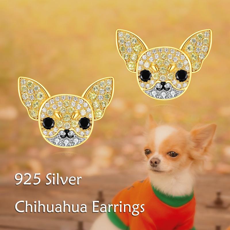 Adorn your ears with these adorable Chihuahua stud earrings crafted in sterling silver. Perfect for dog lovers and pet owners.