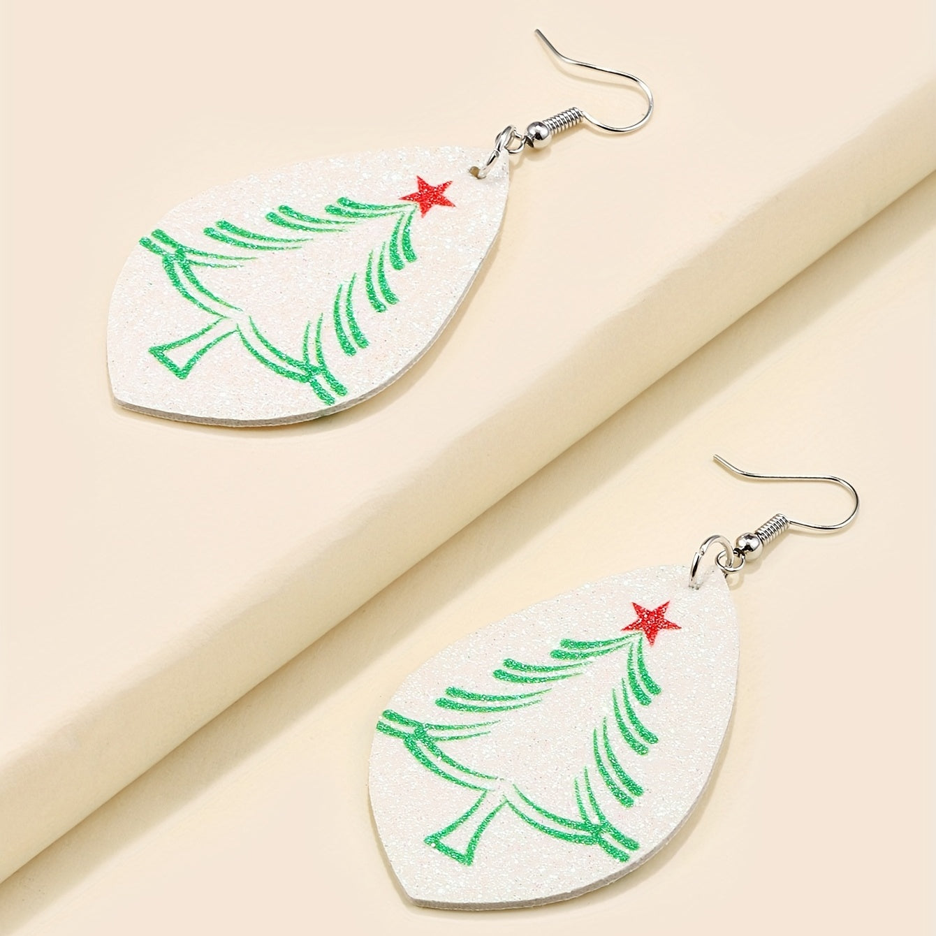 These teardrop shape earrings feature a festive Christmas tree pattern, ideal for holiday parties. Made from high-quality PU leather, they make a great gift for any female.