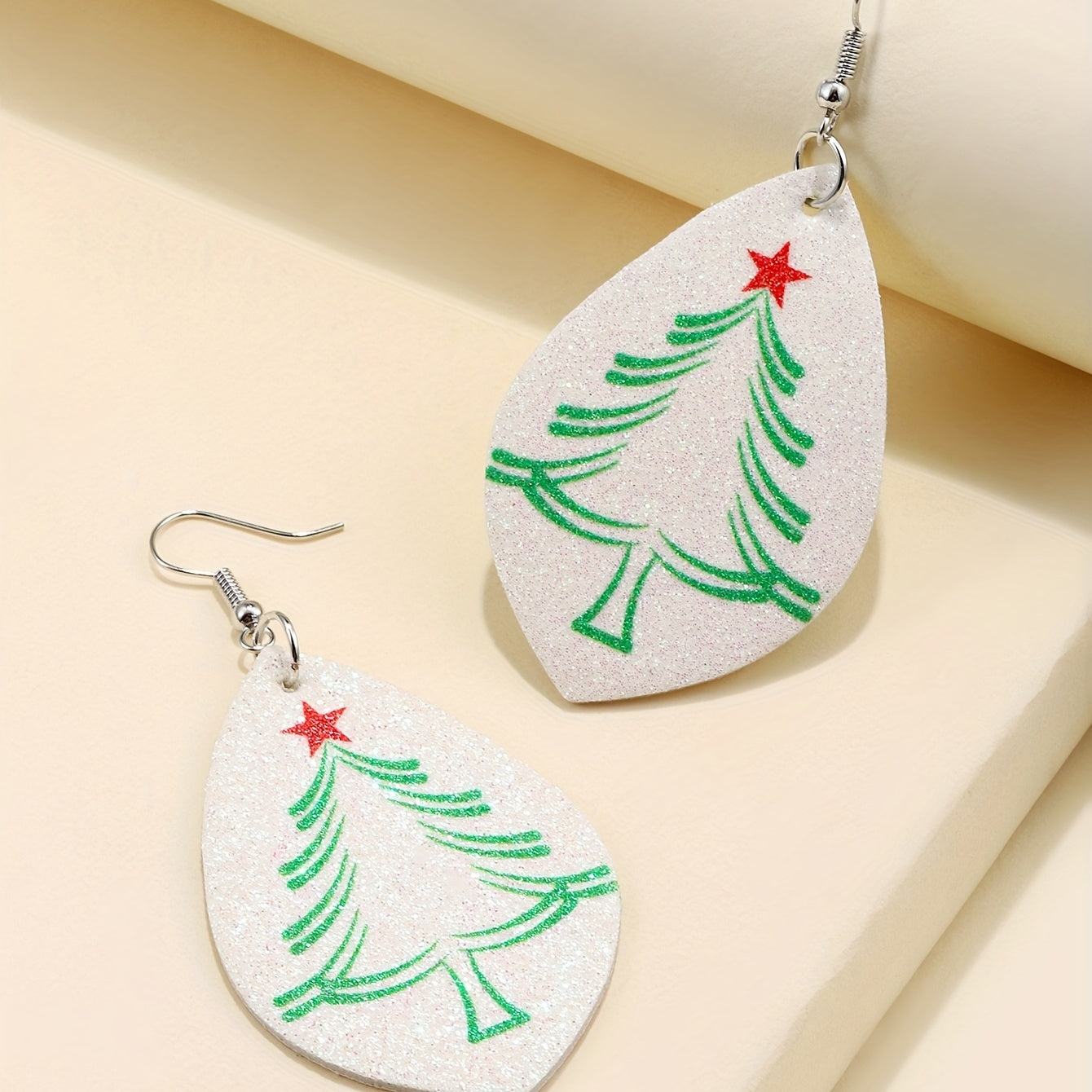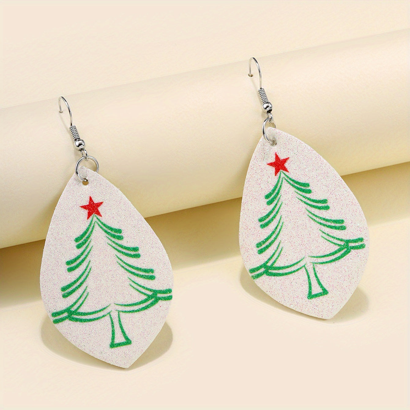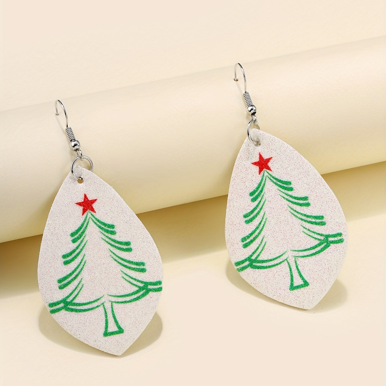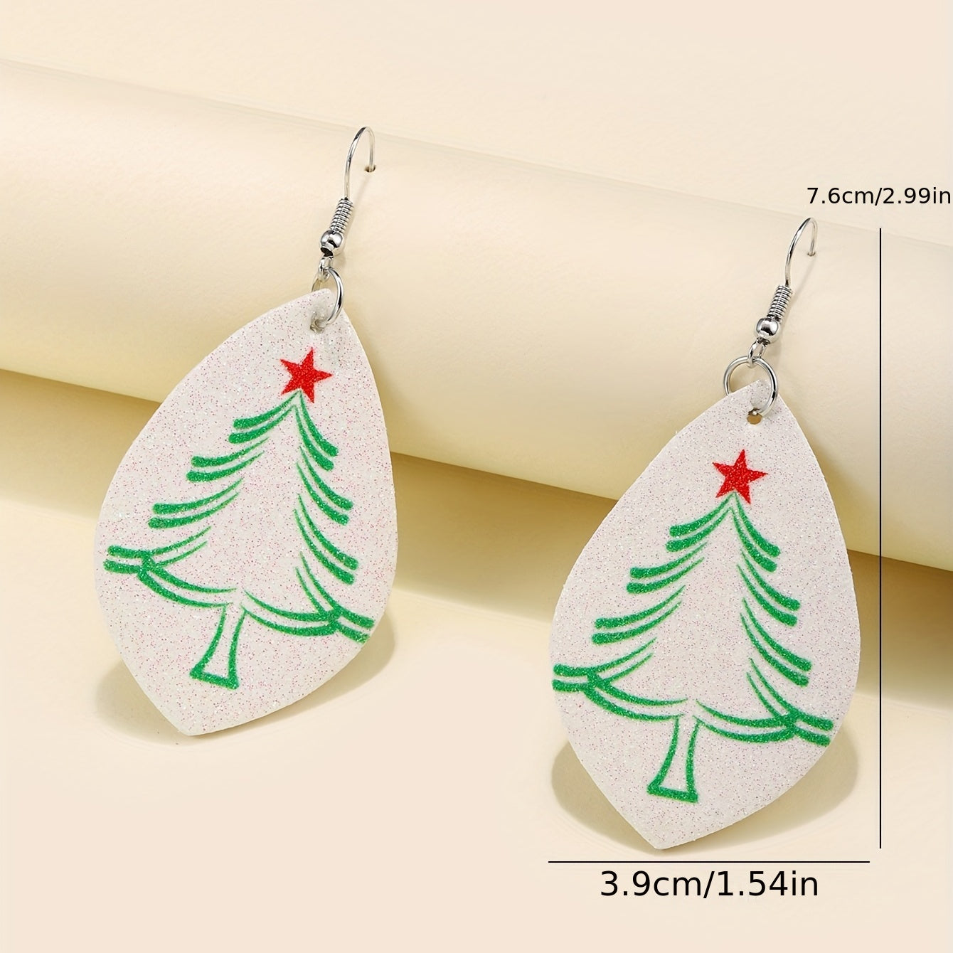 • Teardrop shape earrings with Christmas tree pattern