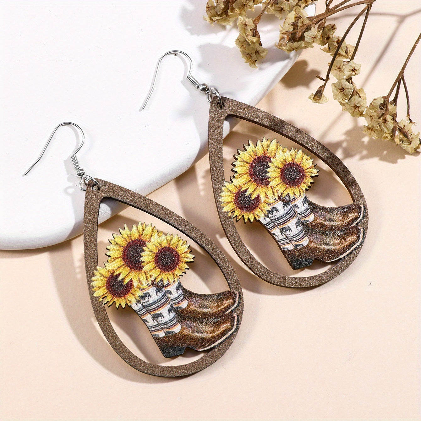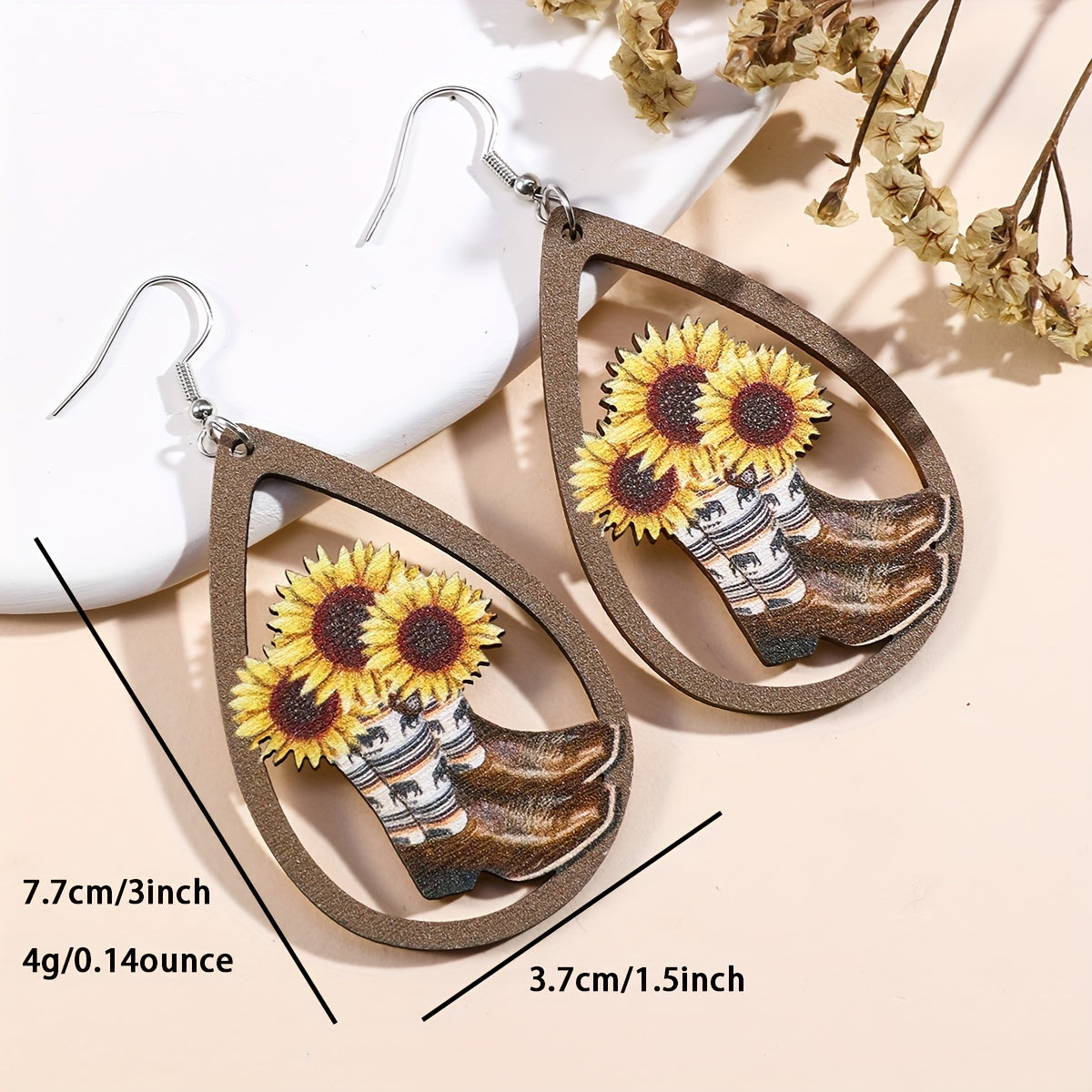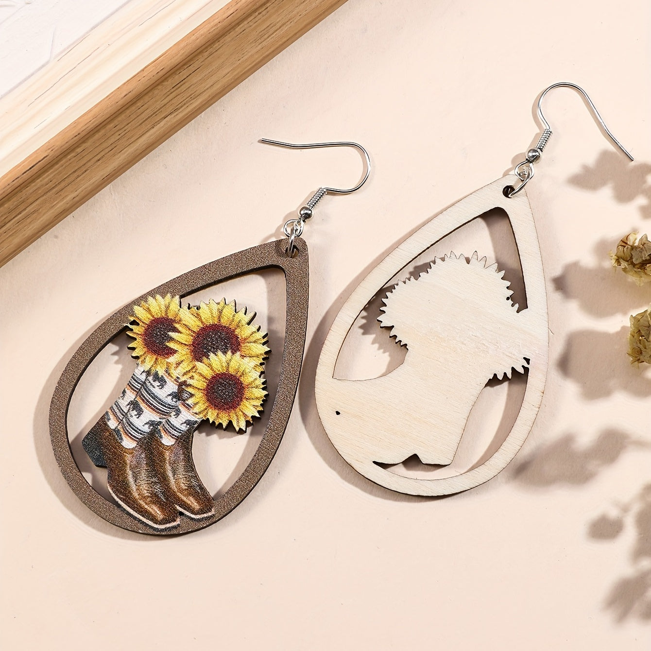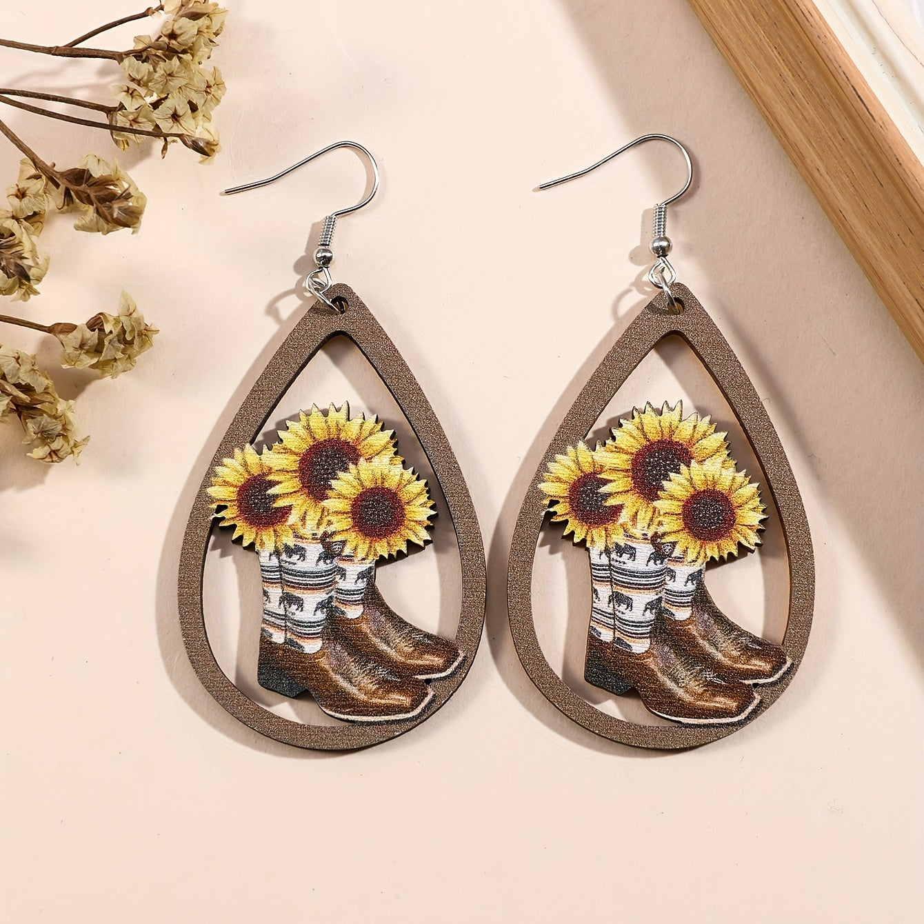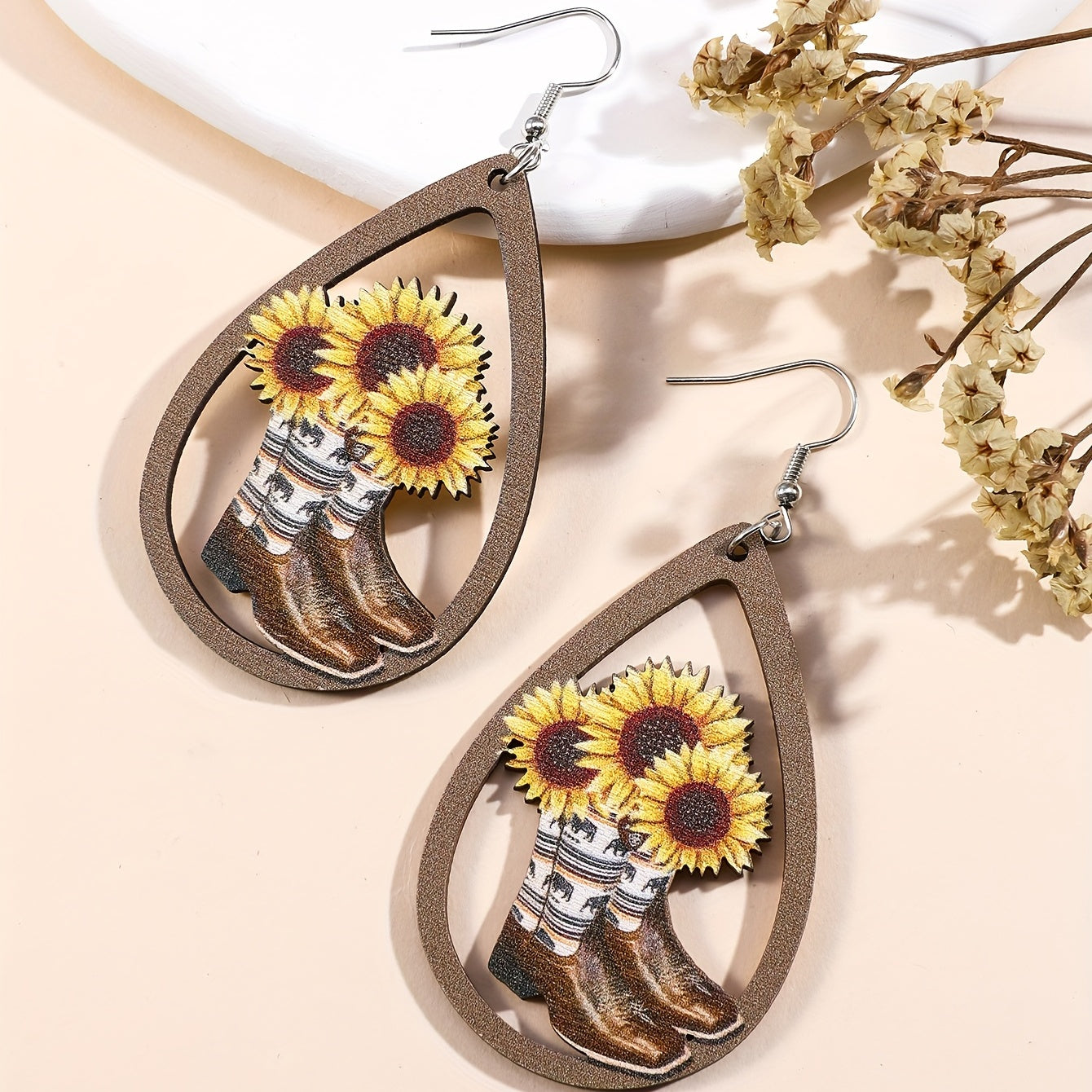 Add a touch of western flair with these wooden chrysanthemum boots cutout teardrop dangle earrings. Perfect gift for females who appreciate unique accessories.