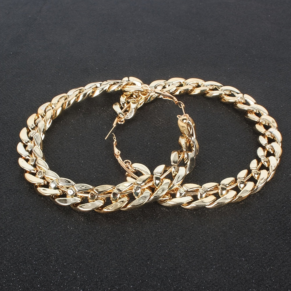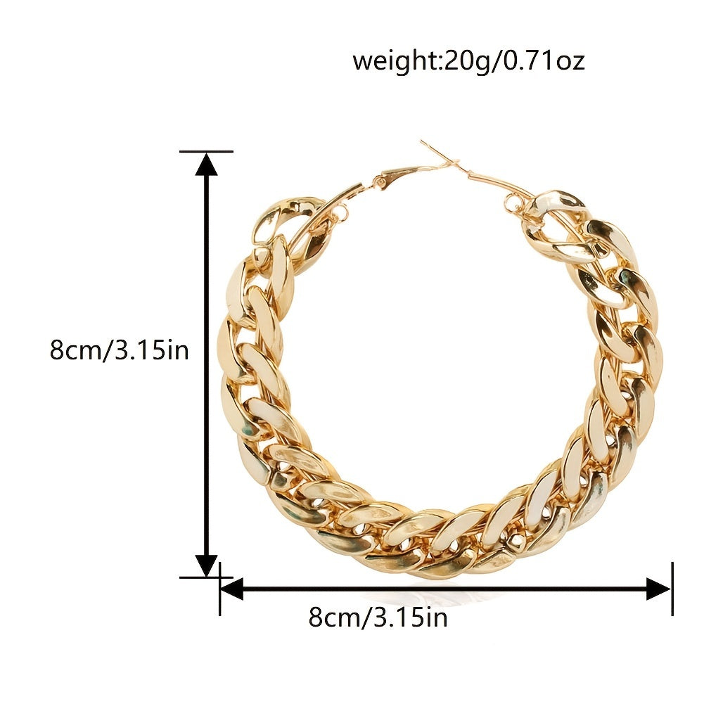 These striking punk-style earrings are perfect for weddings, parties, or proms. They feature a chunky chain design and large geometric round shape.