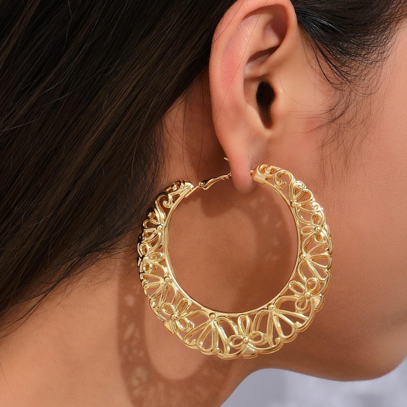 Make a bold statement with these golden chunky hoop earrings. Perfect for parties and special occasions, these big circle earrings will add a touch of glamour to any outfit.