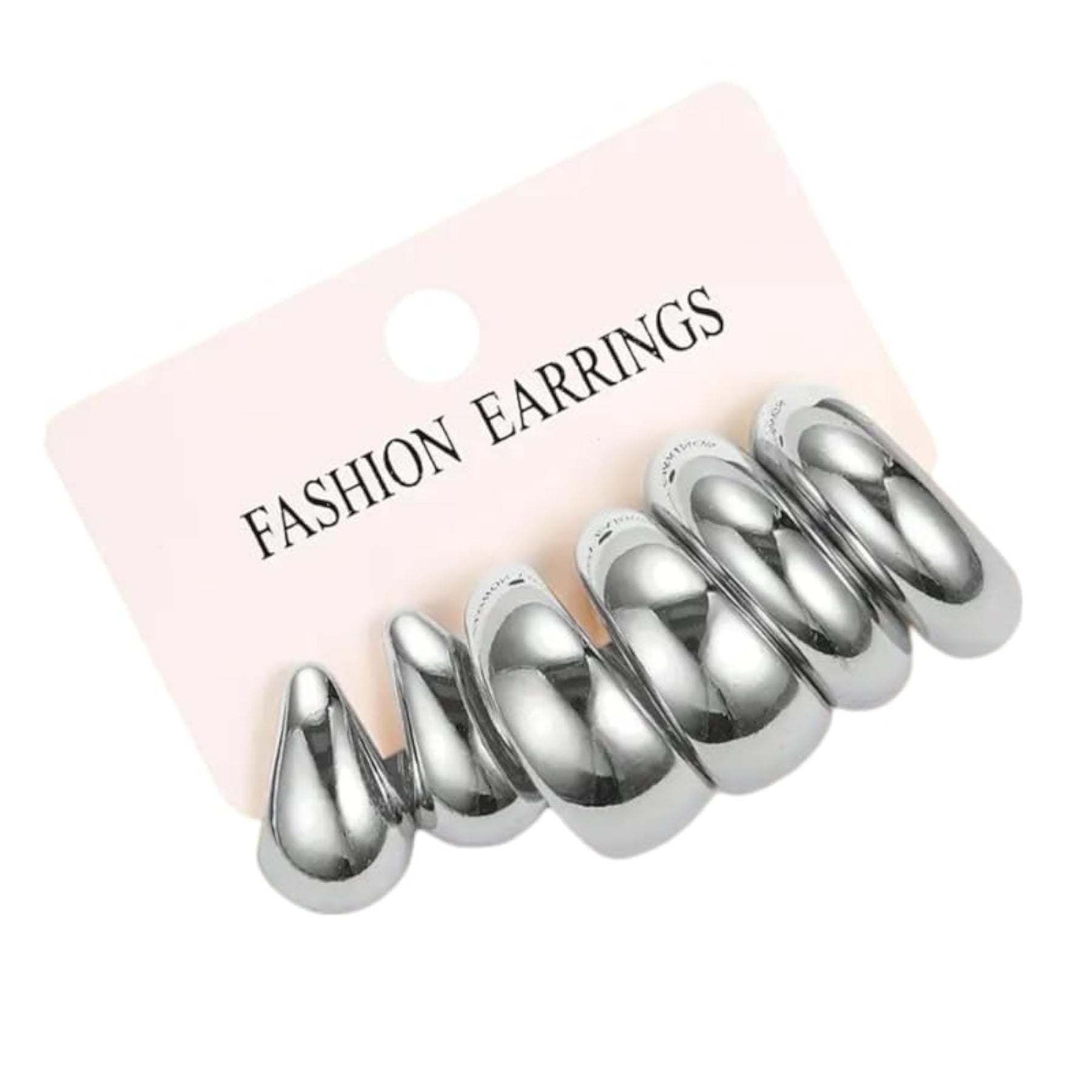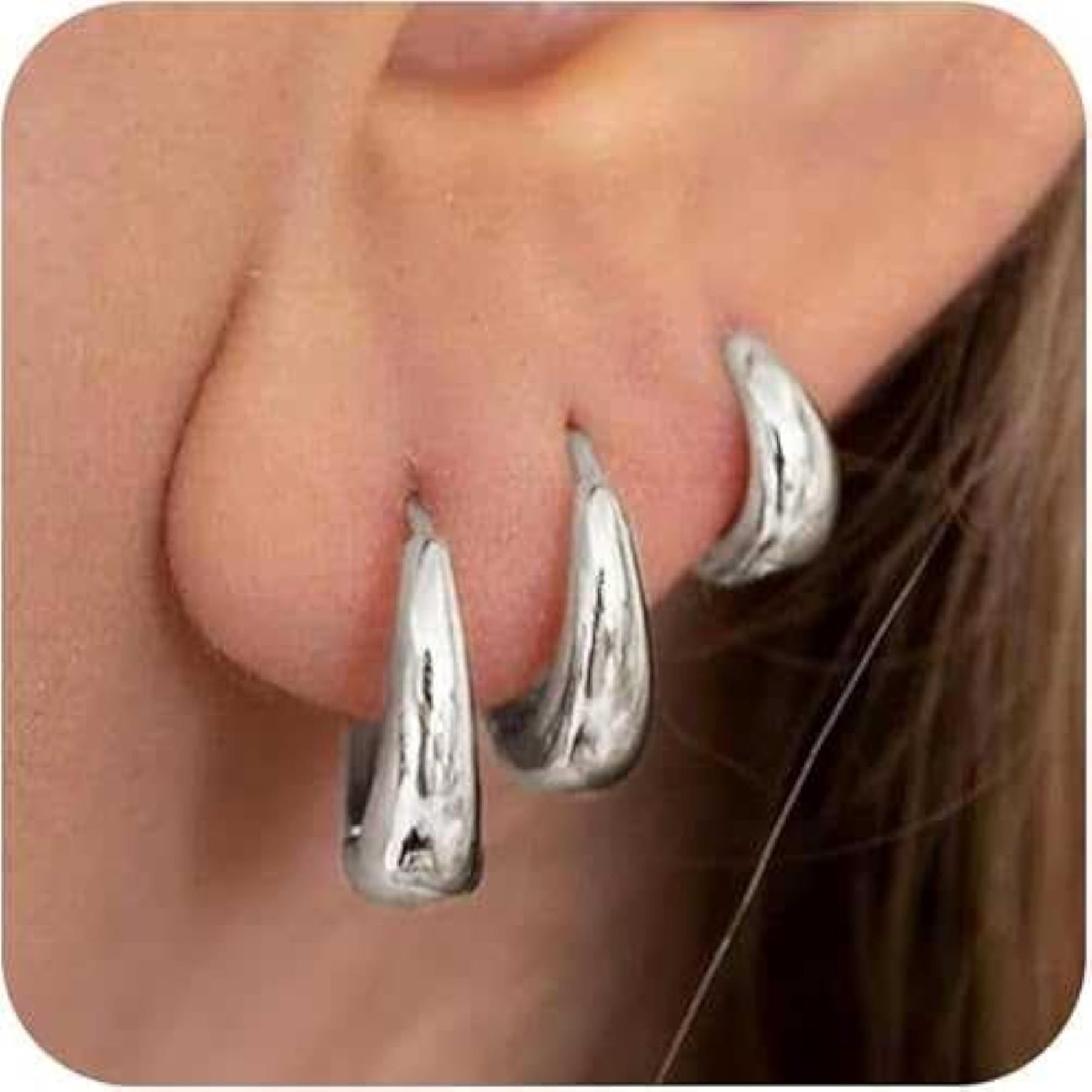 Elevate your style with this set of 3 chunky hoop earrings that will add a trendy touch to any outfit.