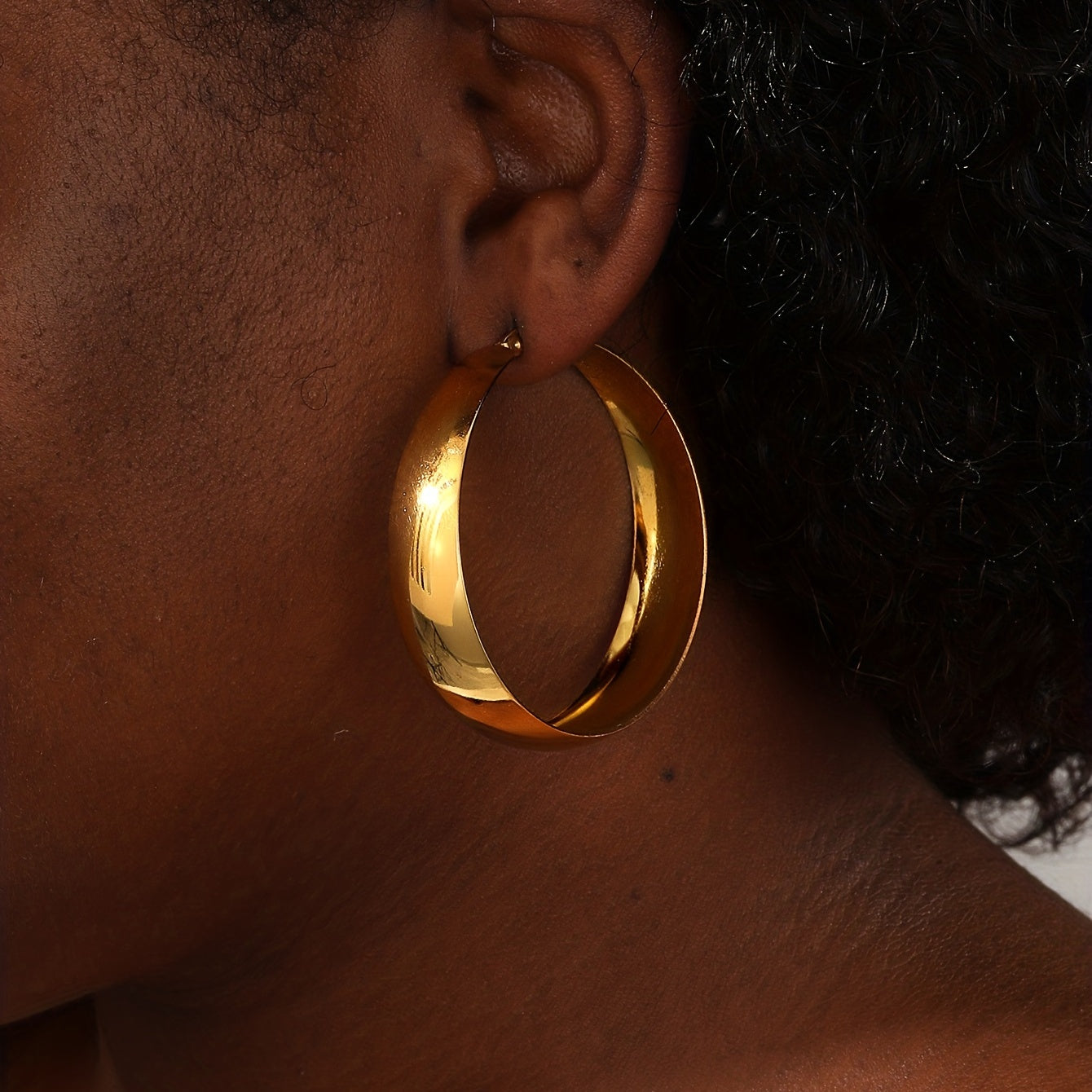 Add a touch of elegance to your daily casual look with these chunky hoop earrings. Made of stainless steel with 18K gold plating, these earrings are perfect for everyday wear. The minimalist design adds a modern touch to any outfit.