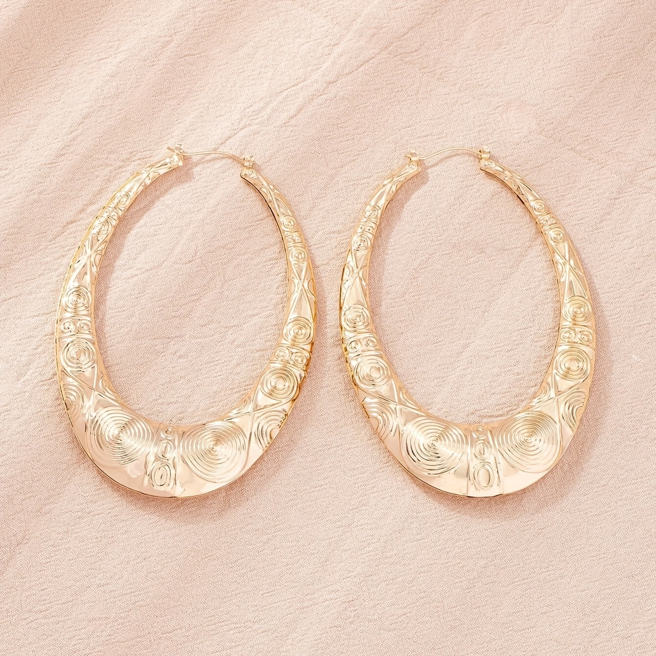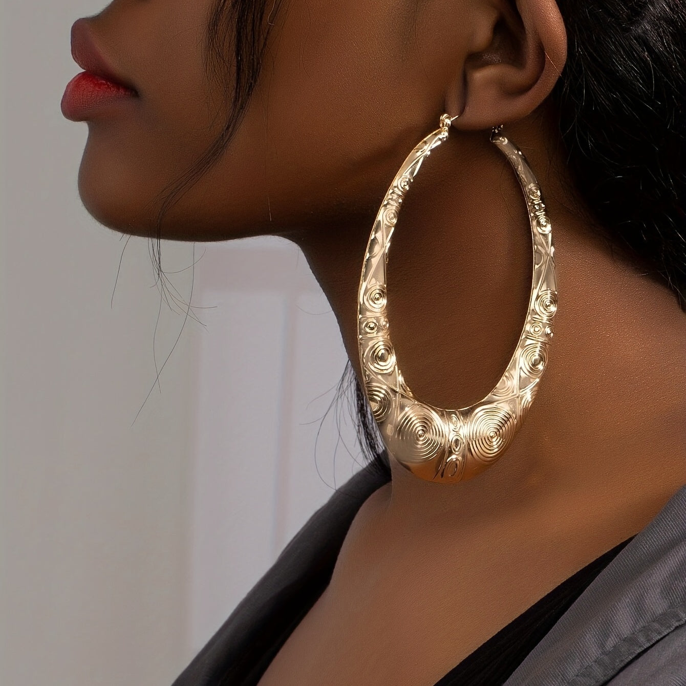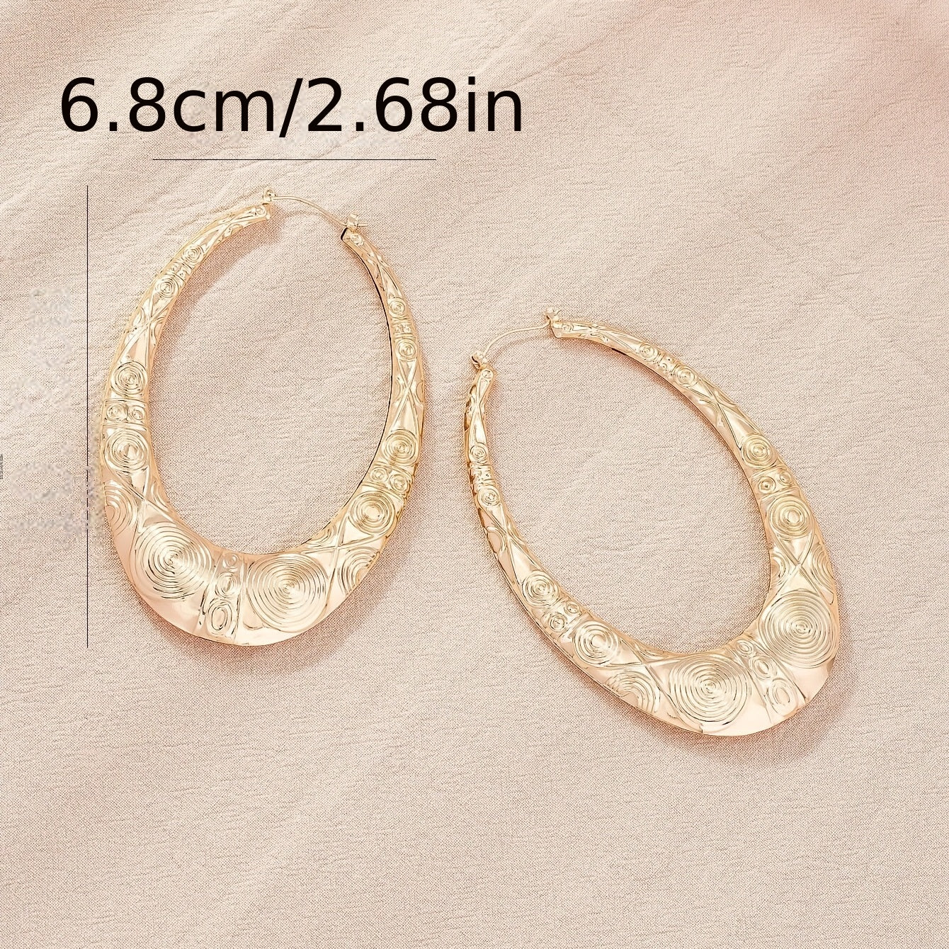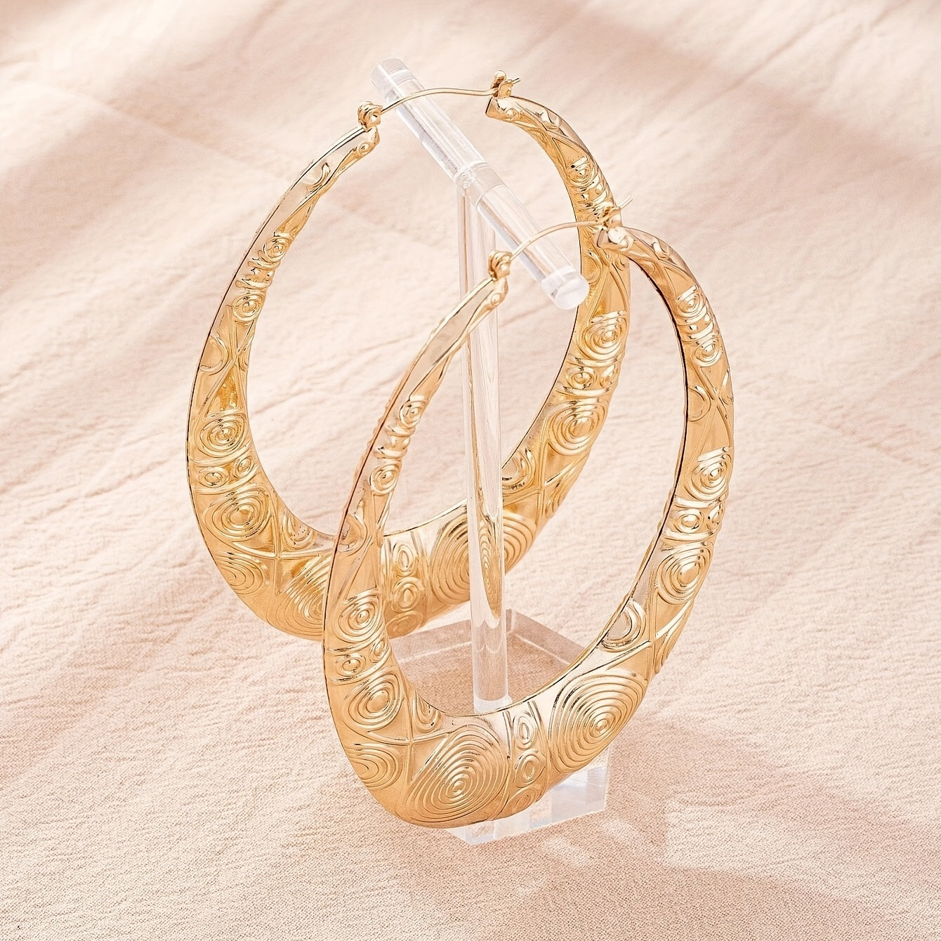 Elevate your style with these chunky hoop earrings featuring a spiral pattern design. Made of alloy with 18K gold plating, these earrings are perfect for adding a touch of glamour to any outfit.