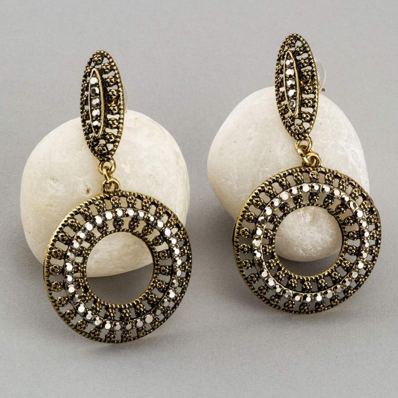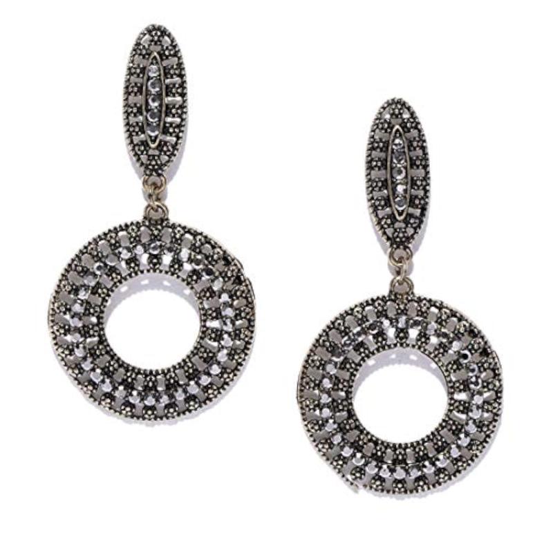 Elevate your style with these exclusive circular oxidized drop earrings, designed to make a brilliant statement.