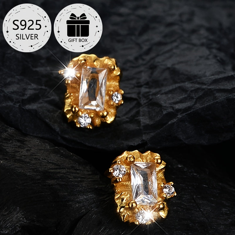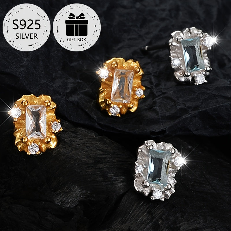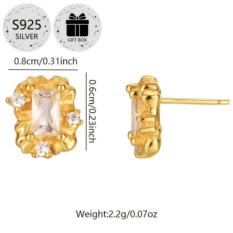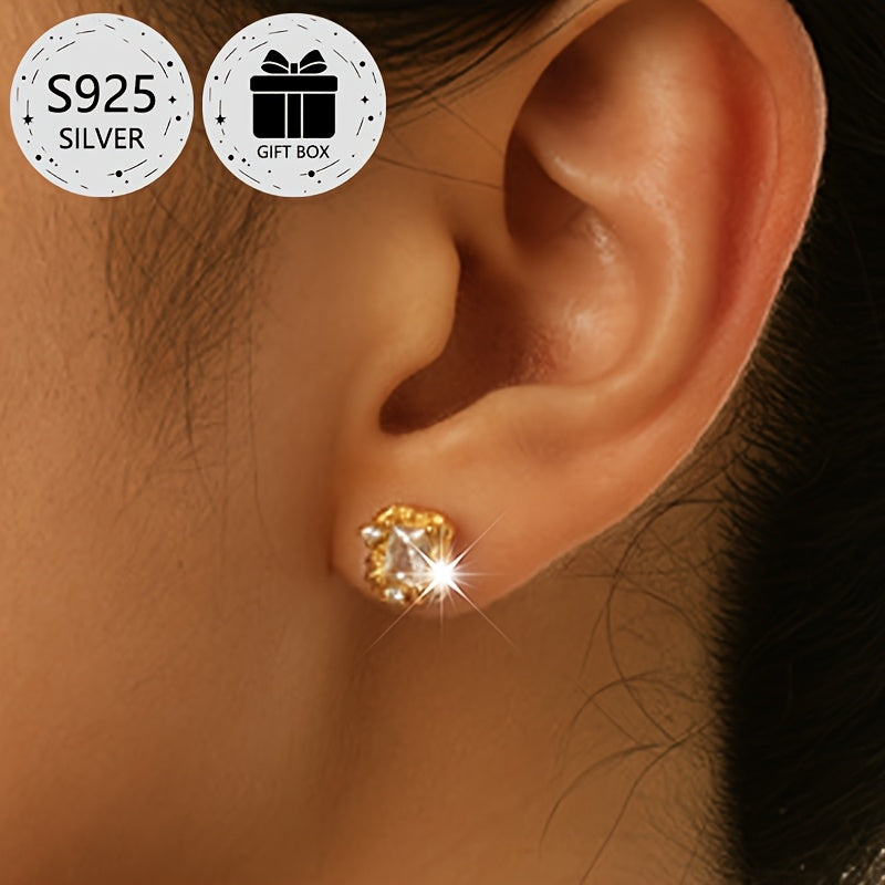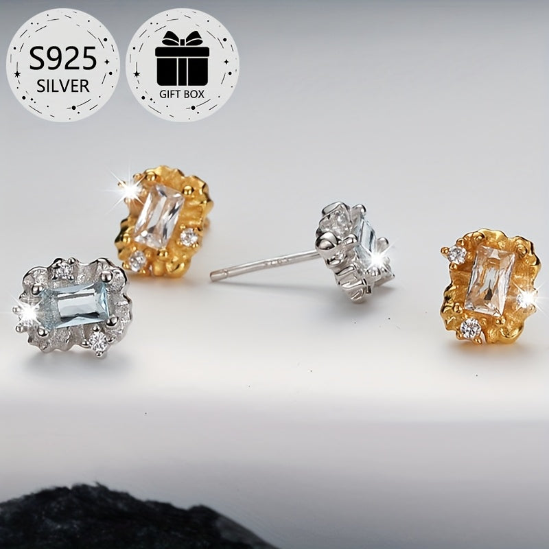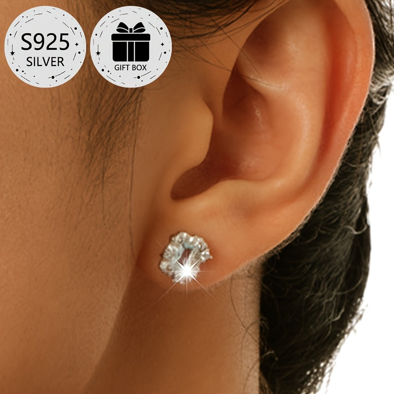 This 2-piece stud earrings set features S925 sterling silver with synthetic cubic zirconia stones. Perfect for daily wear or as a gift for Christmas. No plating ensures long-lasting shine.