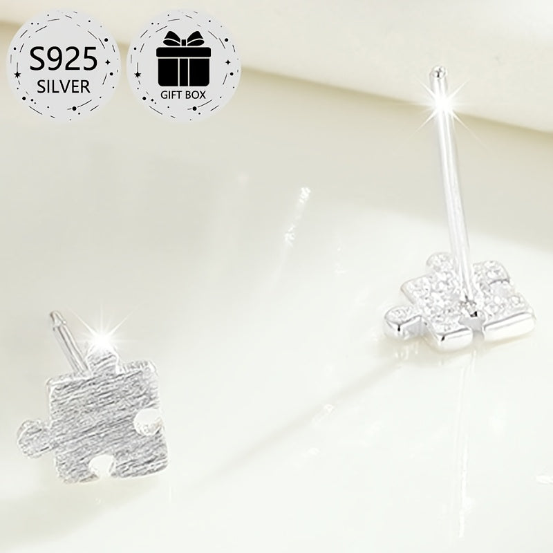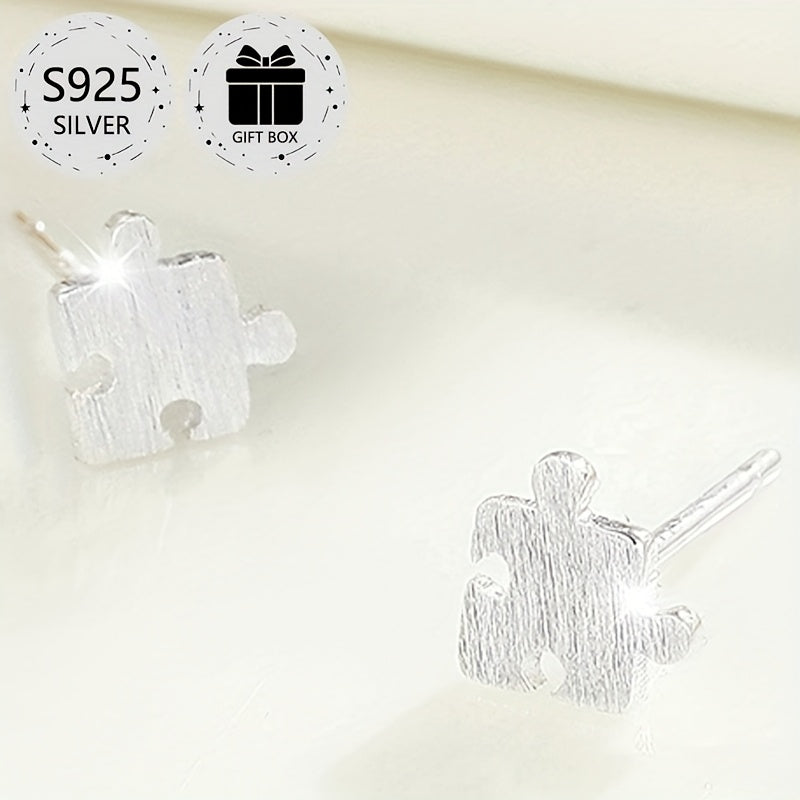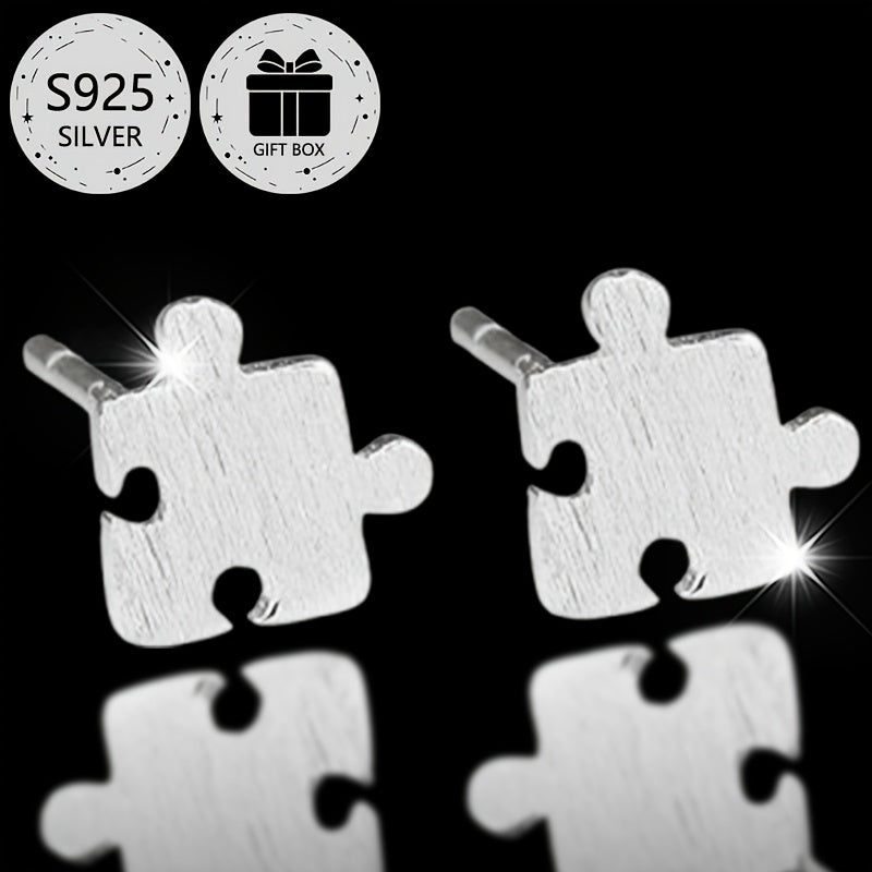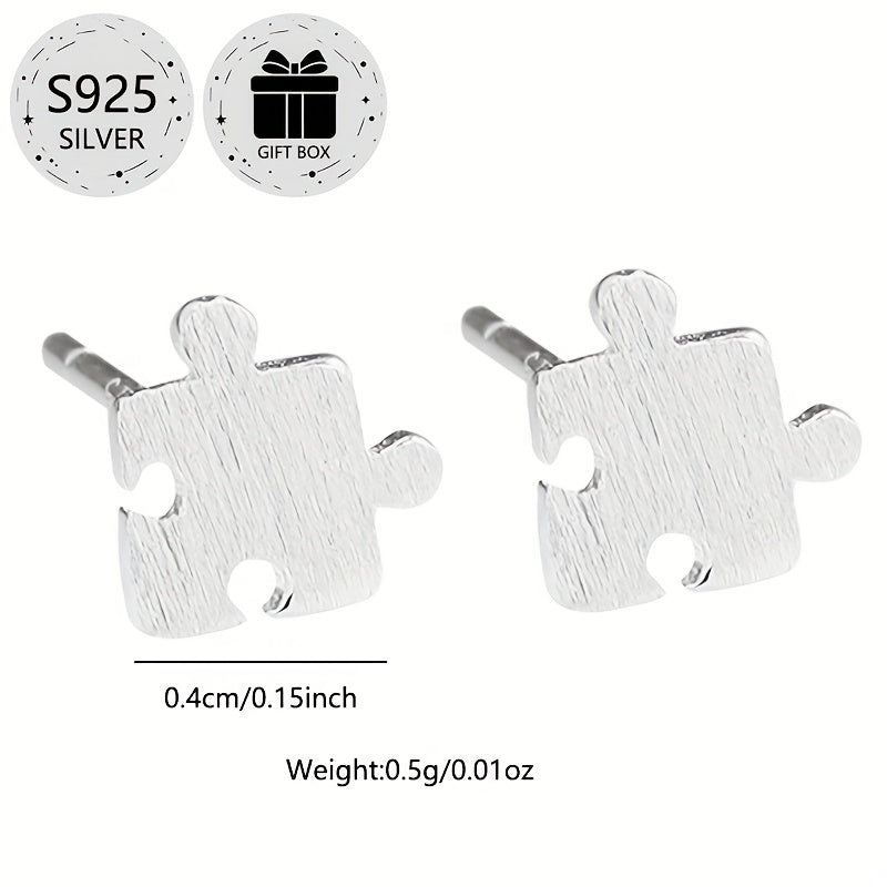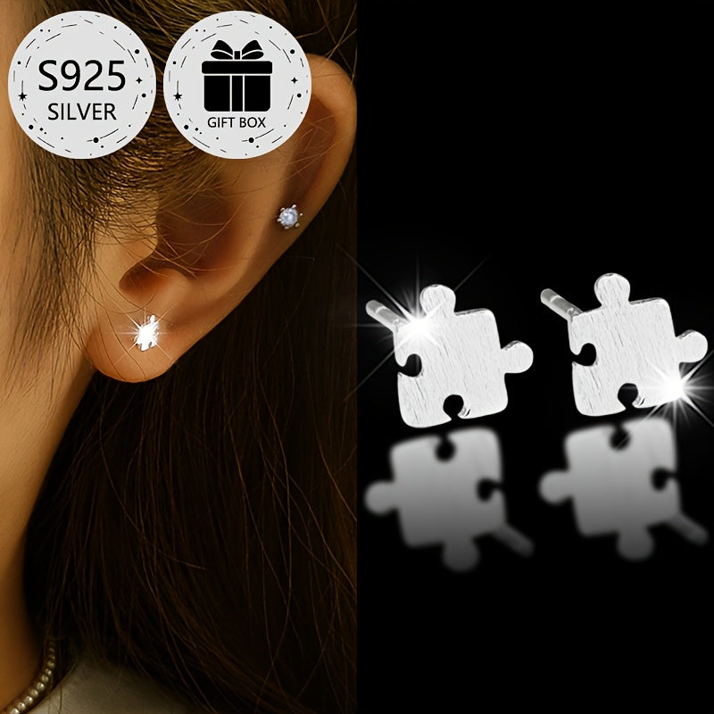 These classic puzzle stud earrings are made of high-quality 925 sterling silver, perfect for daily wear, gifting, and holiday parties.