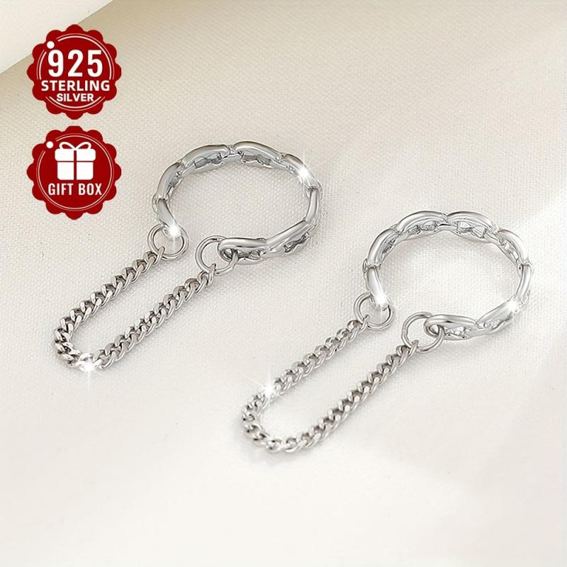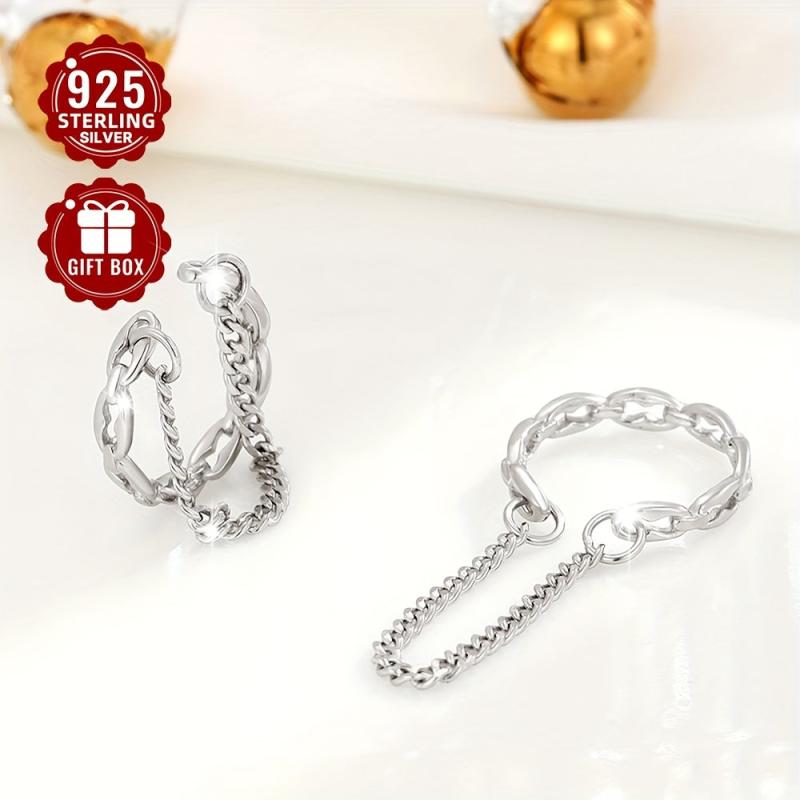 Elevate your style with these 2PC sterling silver clip-on earrings, featuring a mix of Vana and classic chain designs. Ideal for daily wear, these non-pierced ear cuffs are perfect for women.