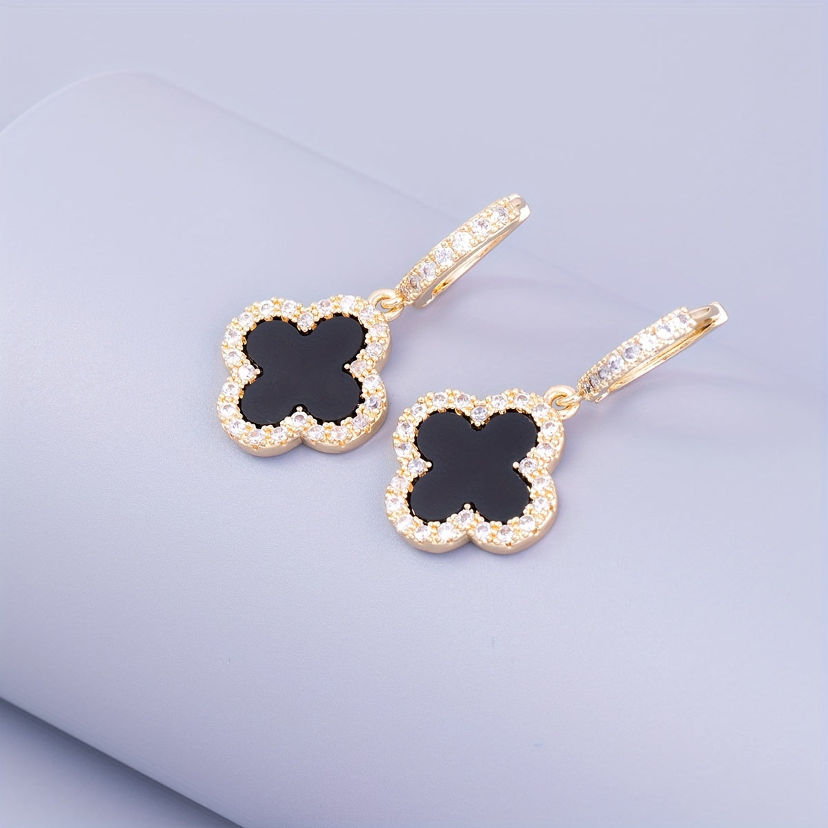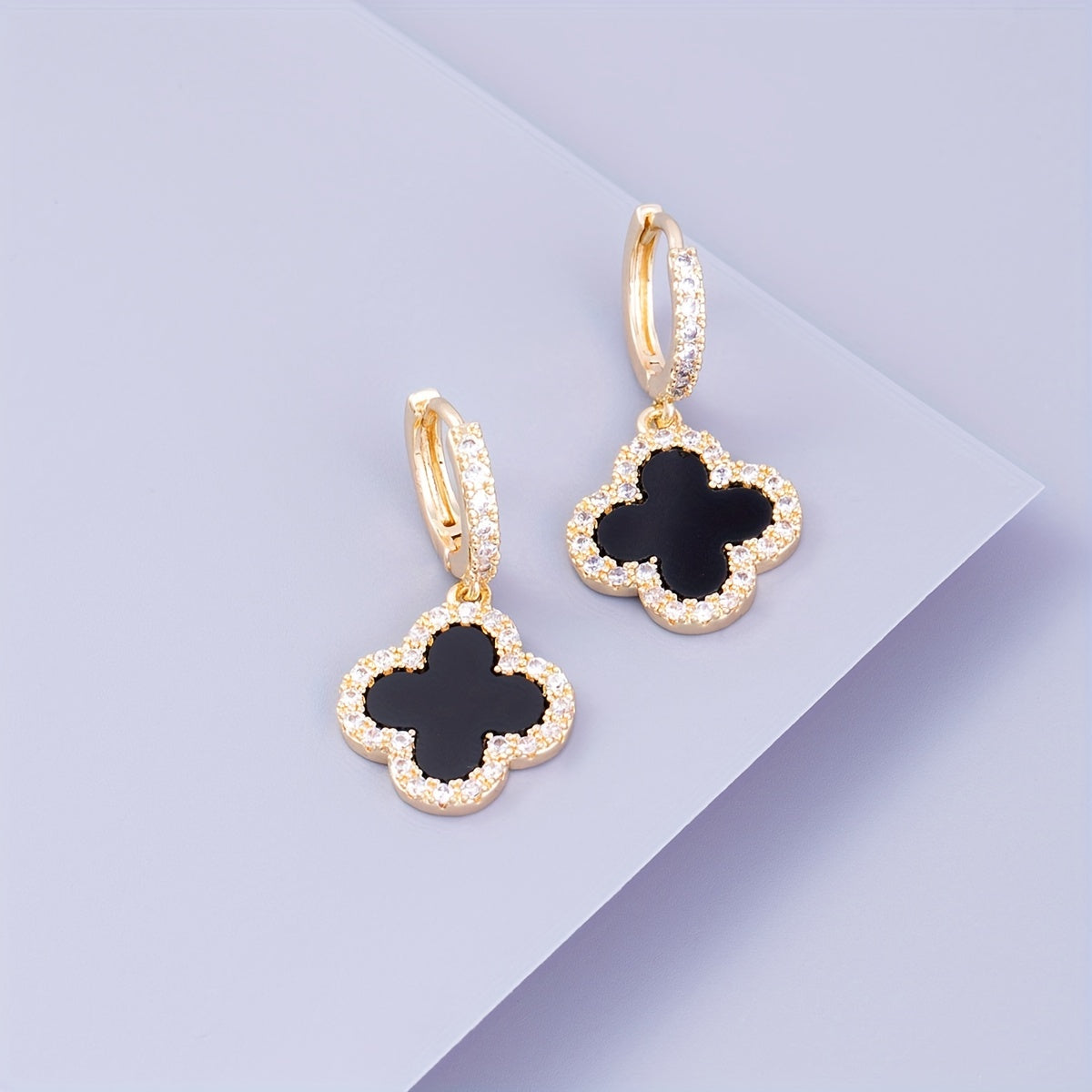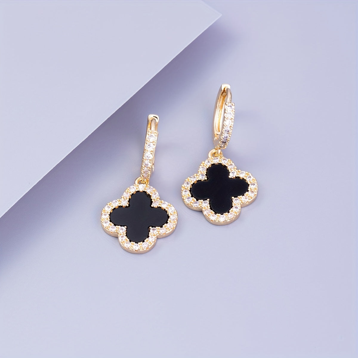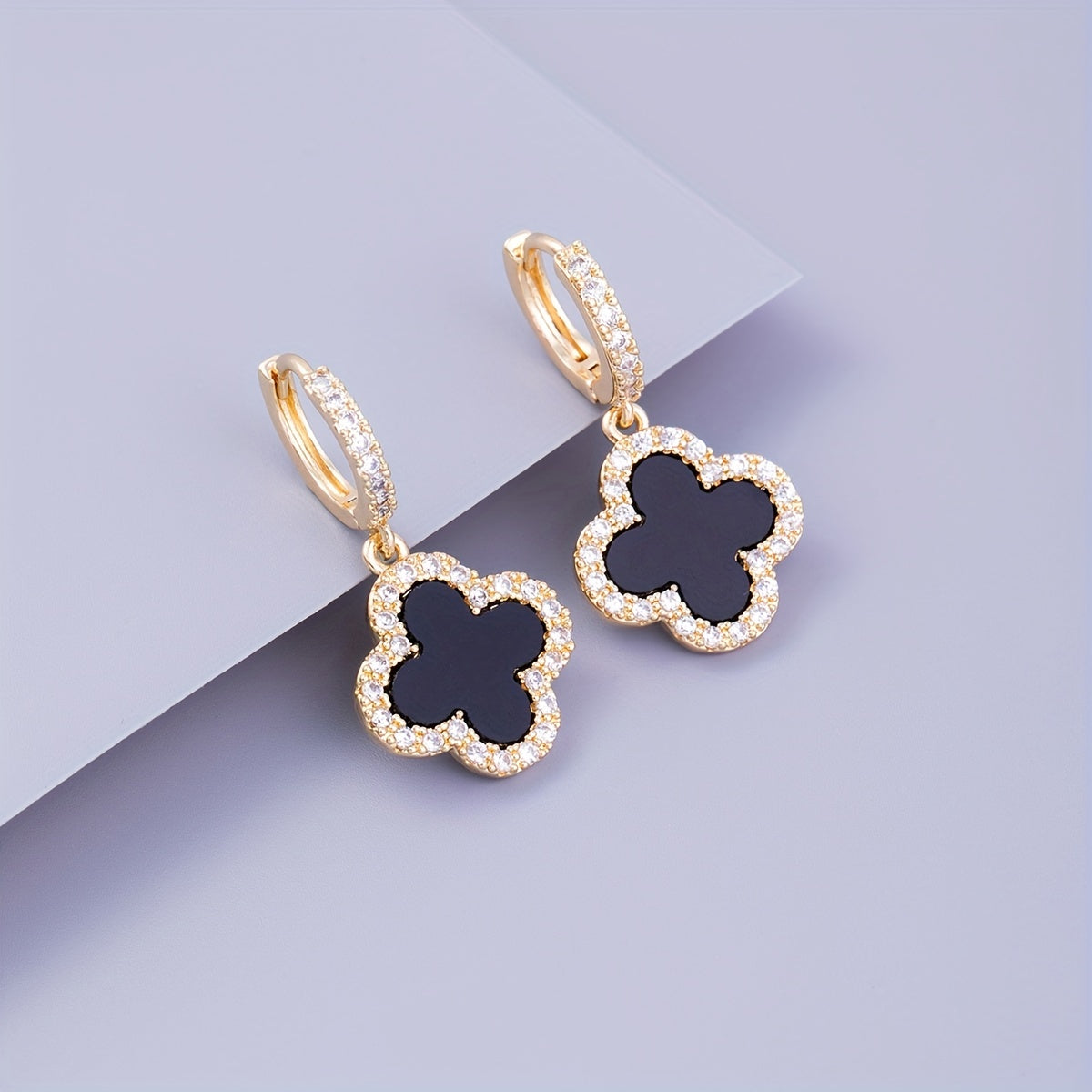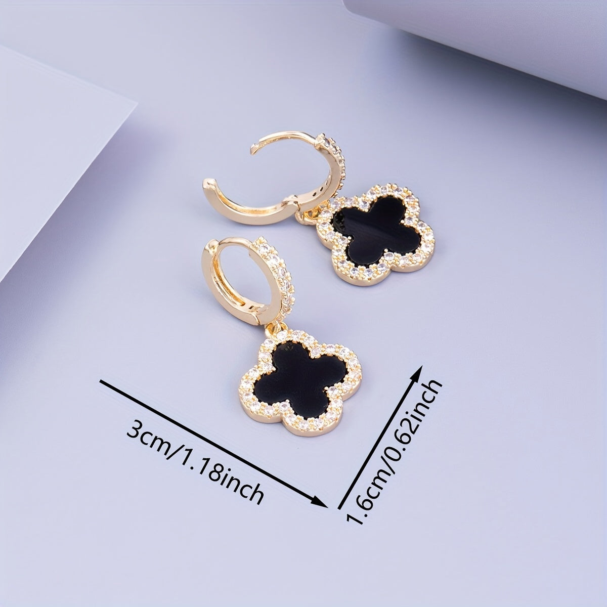 These elegant copper earrings feature a clover flower design adorned with faux diamonds. Perfect for birthdays, holidays, graduations, or as a gift for couples.