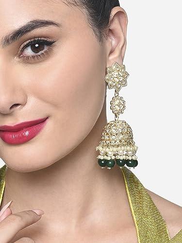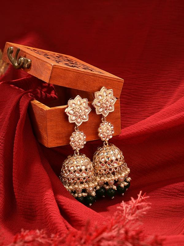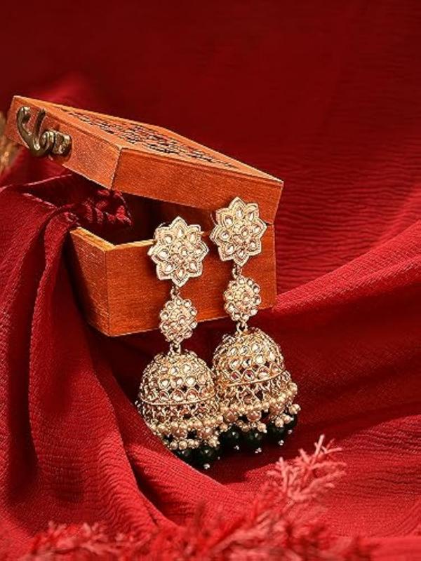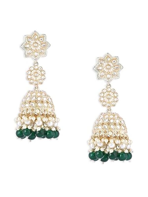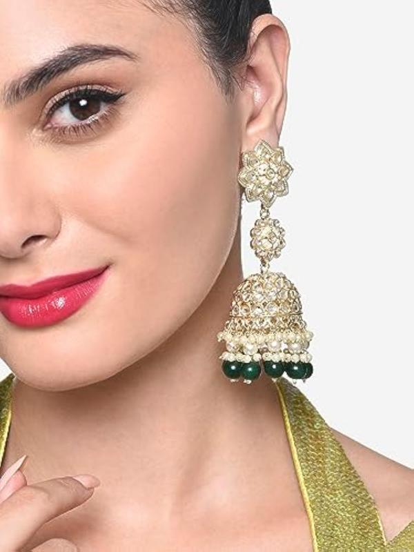 Elegant jhumki earrings with cluster beads and dazzling kundan embellishments. Perfect for adding a touch of traditional charm to your outfit.