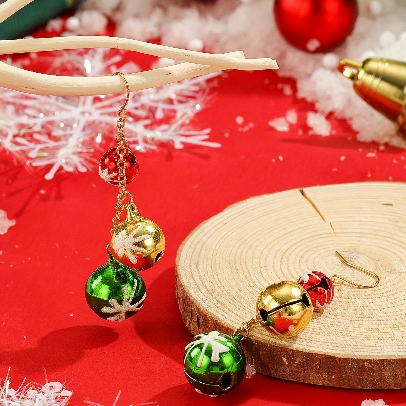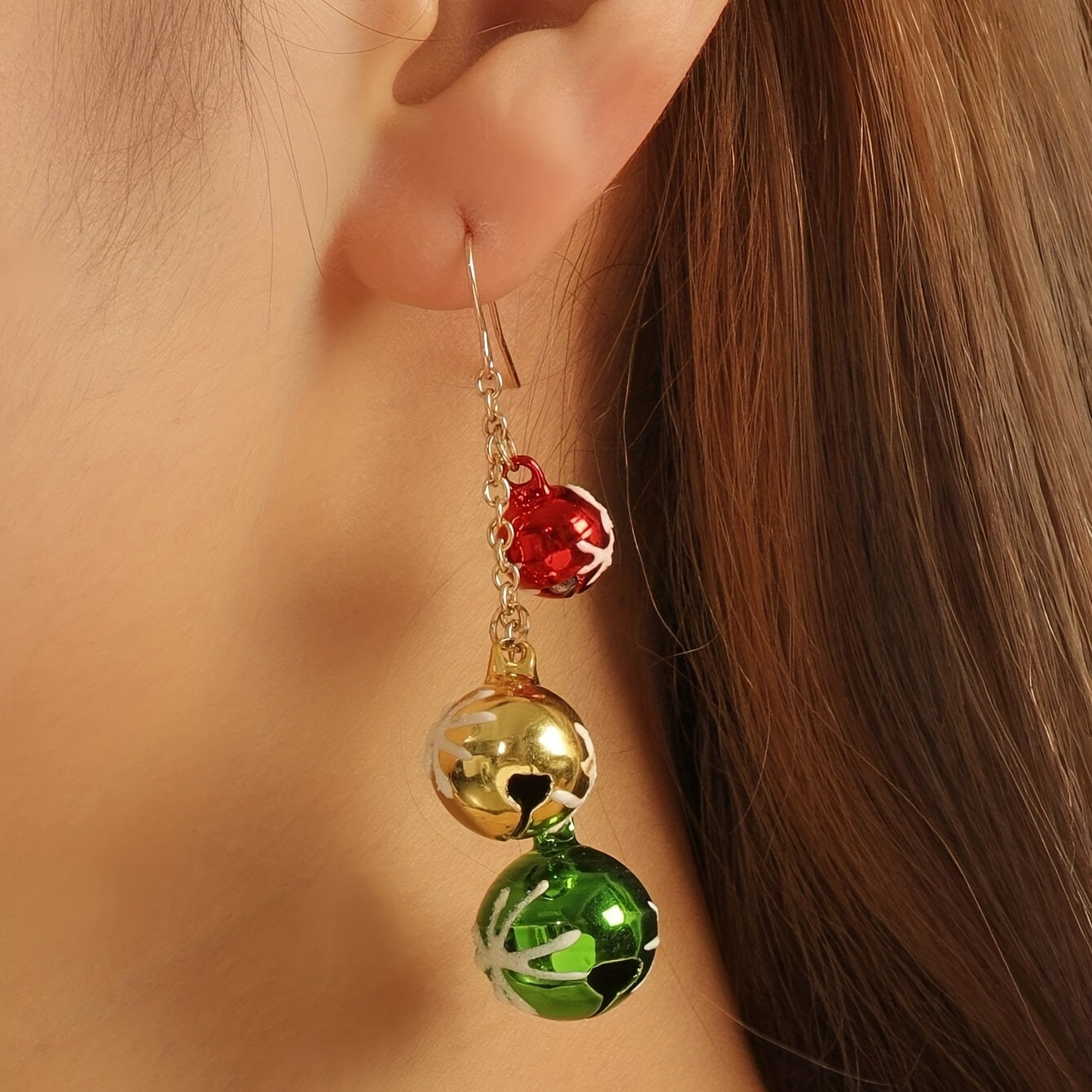 Add a festive touch to your outfit with these colorful bell dangle earrings. Made of alloy with 18K gold plating, these earrings are the perfect accessory for the holiday season. Give them as a gift or treat yourself to some holiday cheer!