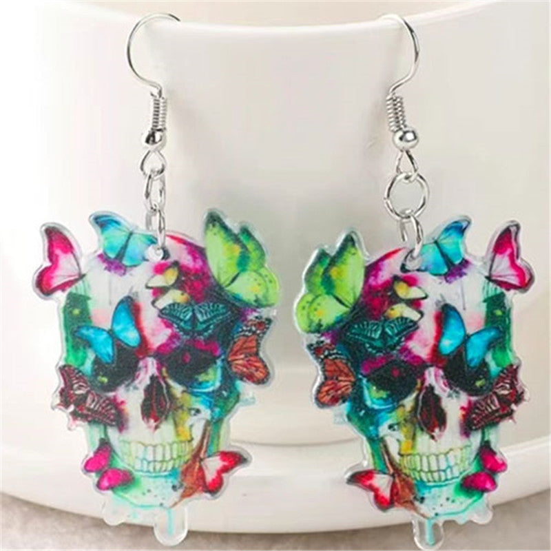 These delicate dangle earrings feature a vibrant butterfly pattern, perfect for adding a touch of bohemian and ethnic style to any outfit. They are made from high-quality acrylic and make a unique and thoughtful gift for any female.