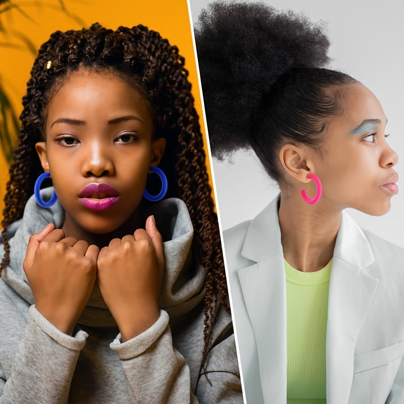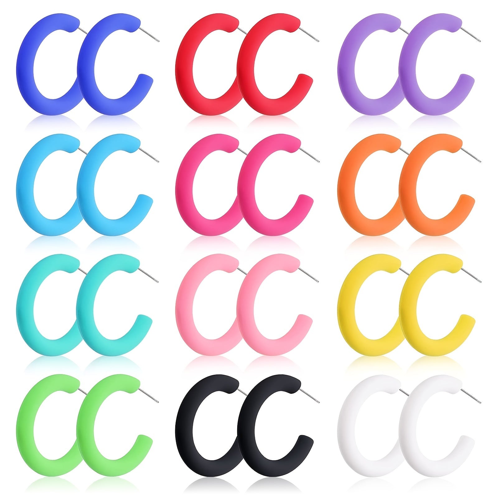 Add a pop of vibrant color to your outfit with these stylish C hoop earrings. Made of neon acrylic, these earrings are perfect for women and girls.
