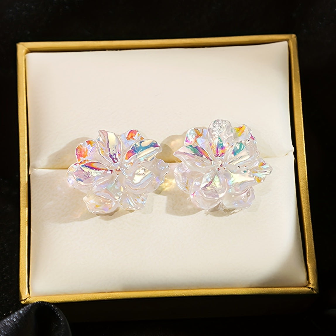 Add a pop of color to your look with these colorful camellia stud earrings. Made of resin, these earrings are perfect for adding a touch of fun and style to any outfit. Offer them as a delicate and thoughtful gift to a special woman in your life.