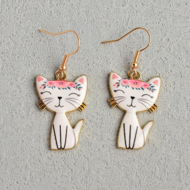 These adorable dangle earrings feature a cartoon style design with colorful cats. Made of high-quality alloy, they are perfect for adding a fun touch to any outfit.