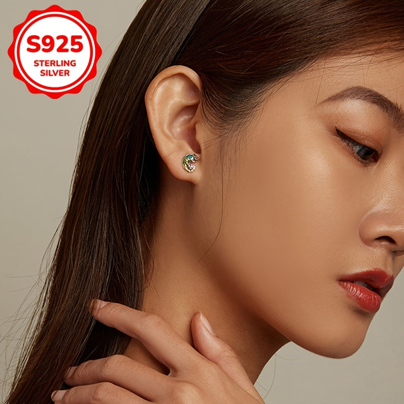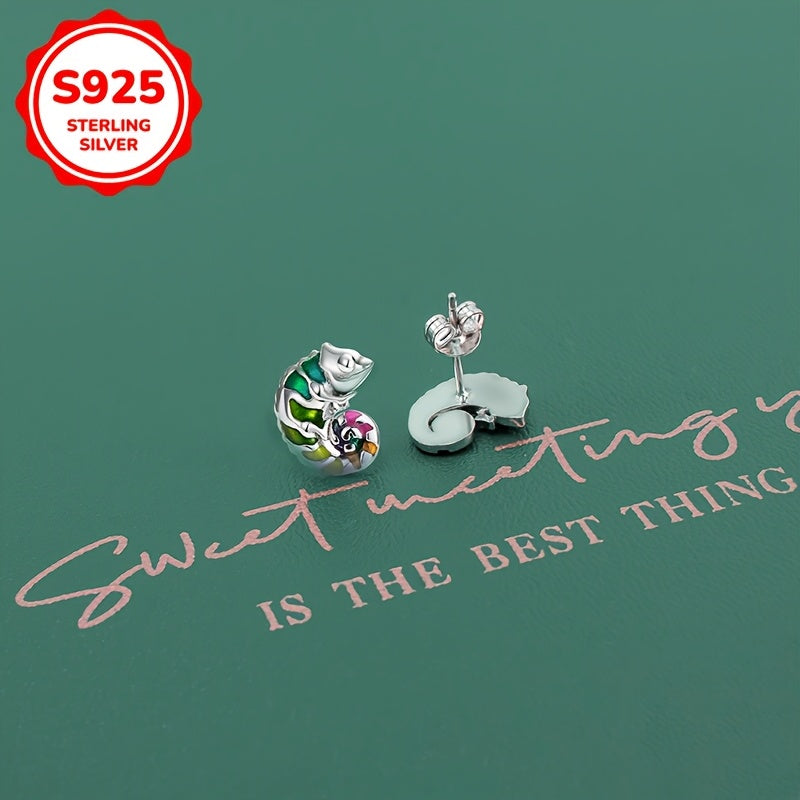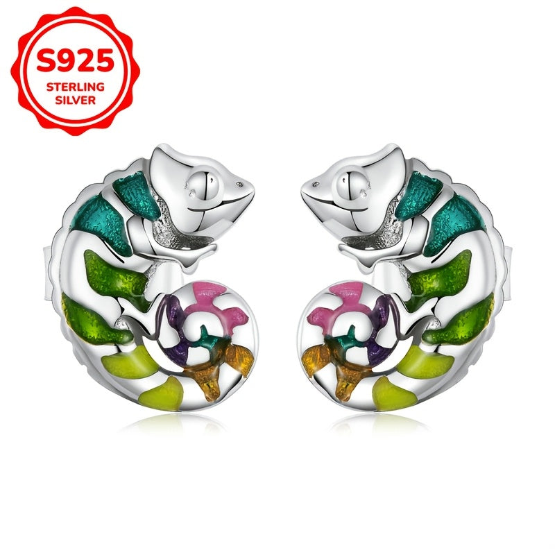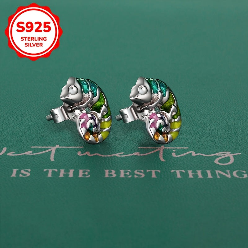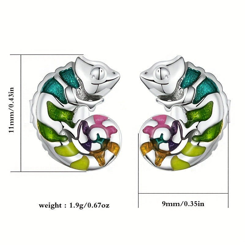 These adorable chameleon earrings are made of high-quality S925 silver, perfect for those with sensitive skin. They are lightweight at only 1.9g and feature a vibrant and eye-catching design.