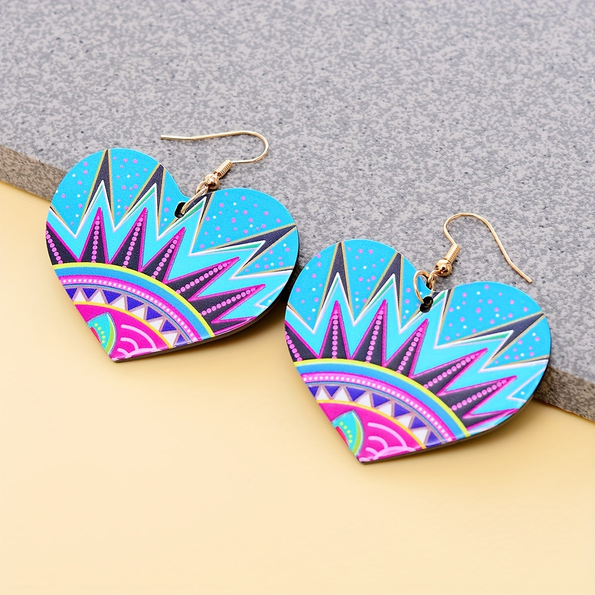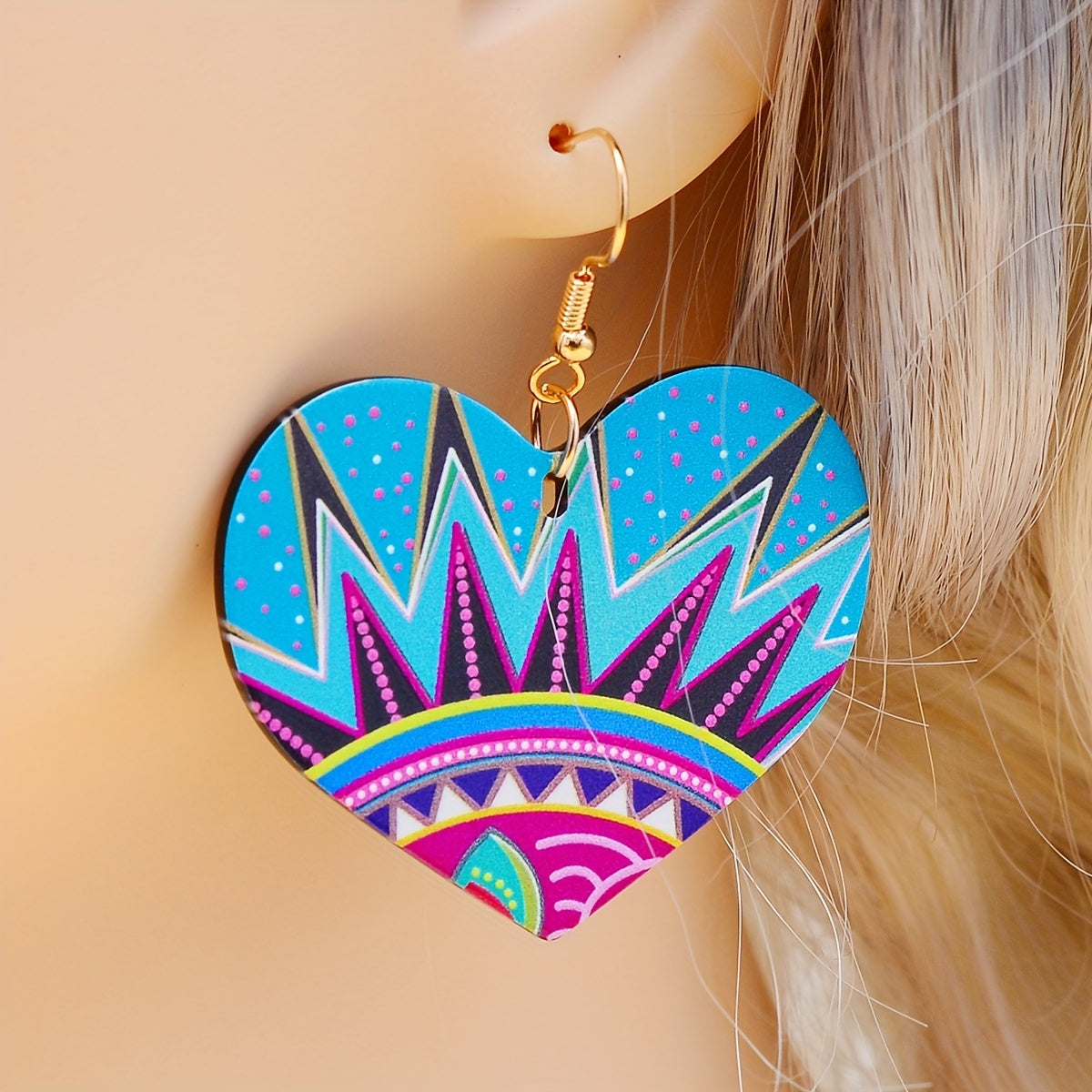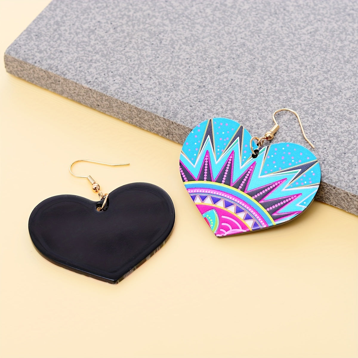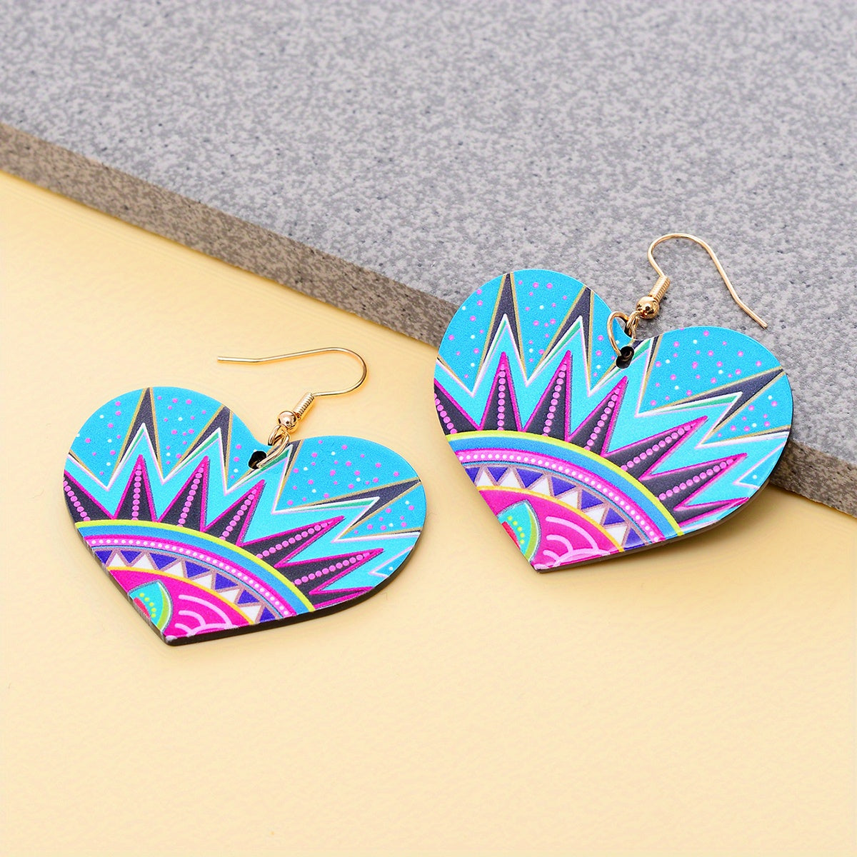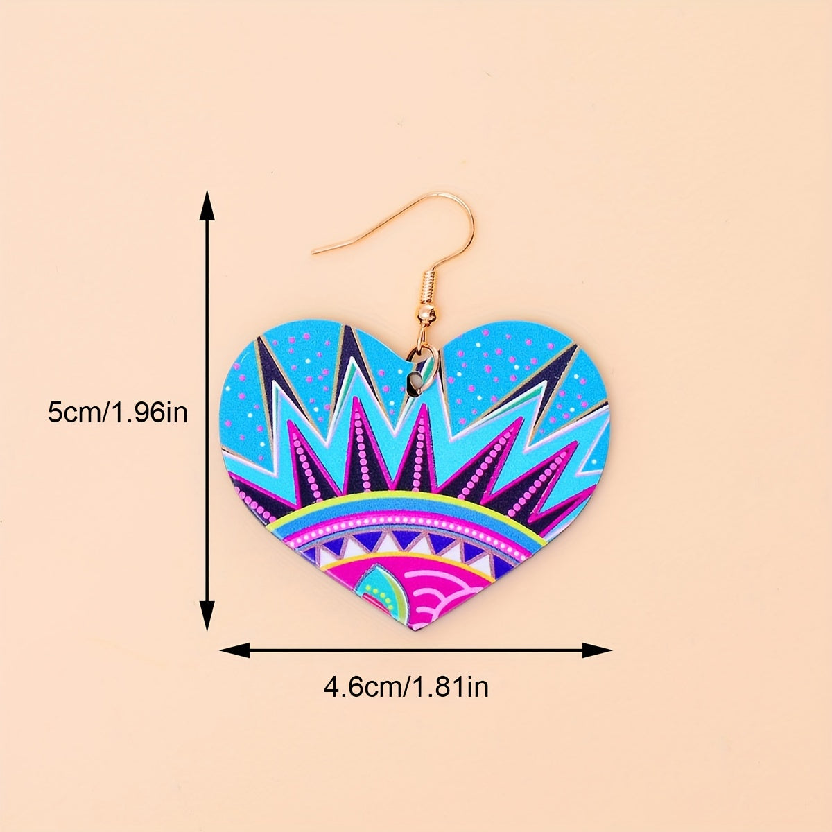 Add a pop of color to your outfit with these bohemian-style heart shape dangle earrings. Made of acrylic material, these earrings are a perfect gift for any fashion-forward female.