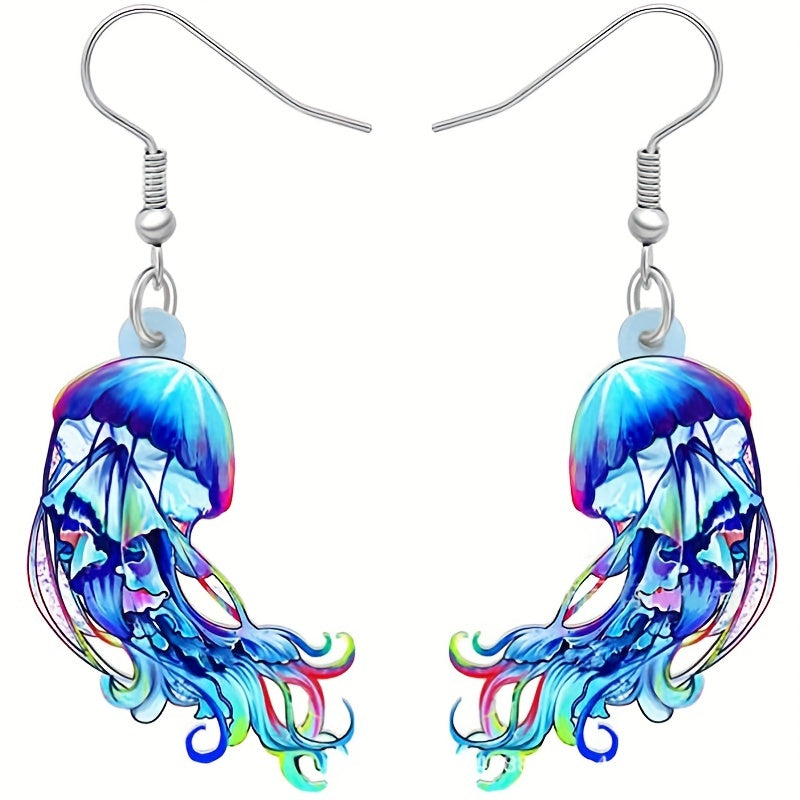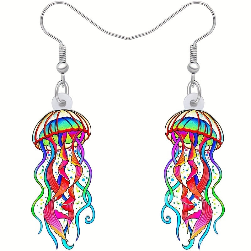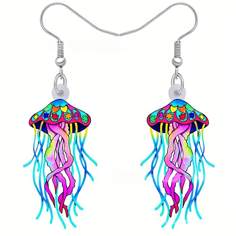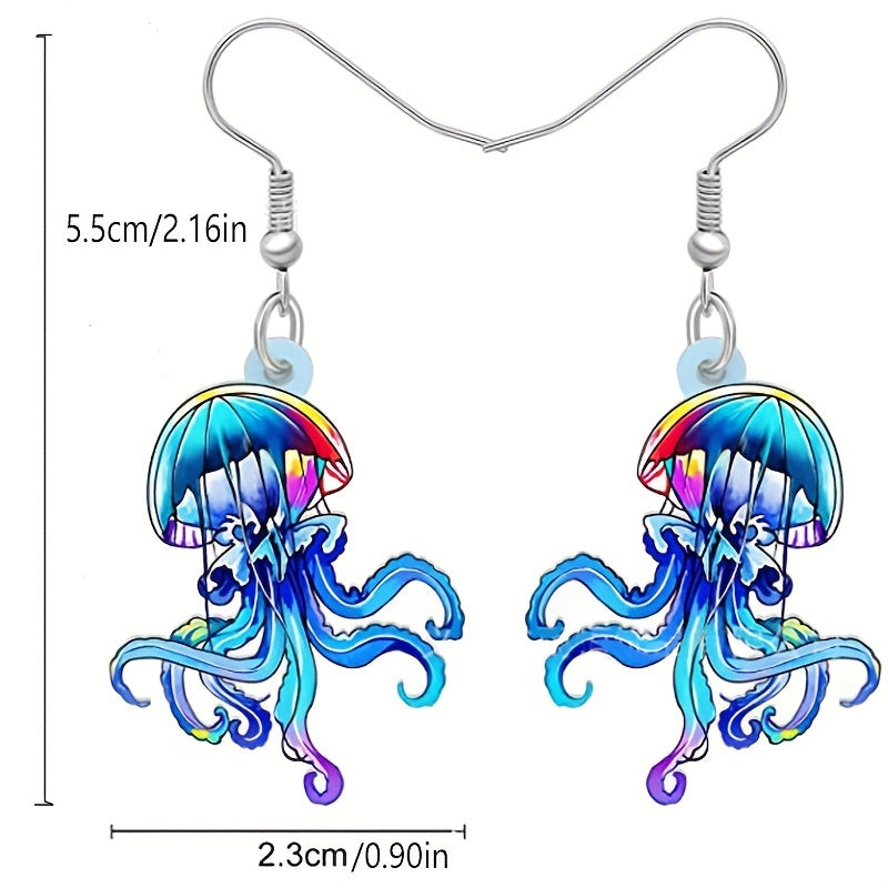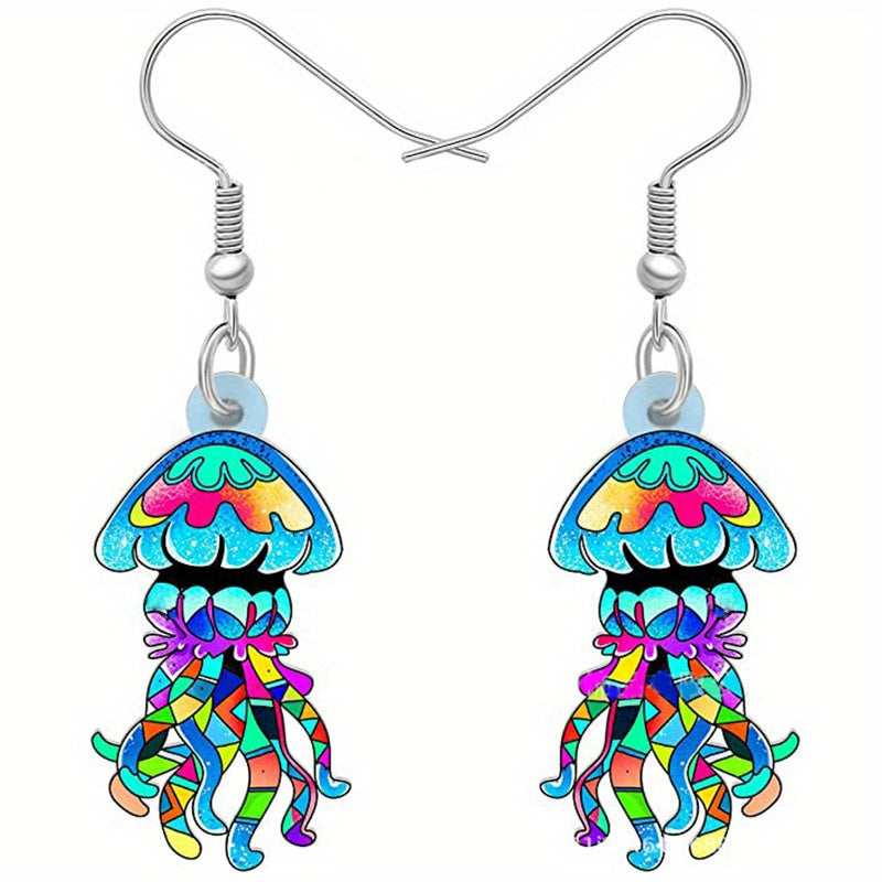 Elevate your daily look with these cute cartoon jellyfish earrings. Made of acrylic material in a minimalist style, they are perfect for daily wear or as a gift for a female friend.
