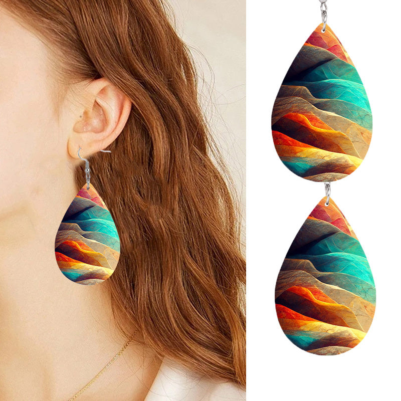 Colorful Mountain Teardrop Dangle Earrings Boho Style