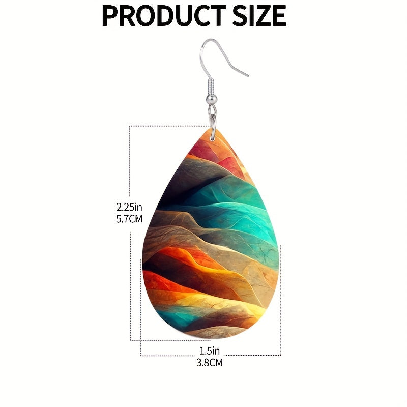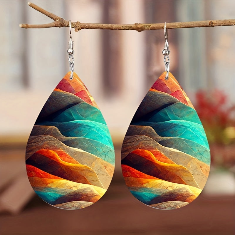 Add a touch of bohemian flair to your look with these colorful mountain print teardrop earrings. Made of high-quality PU leather, perfect for daily casual wear.