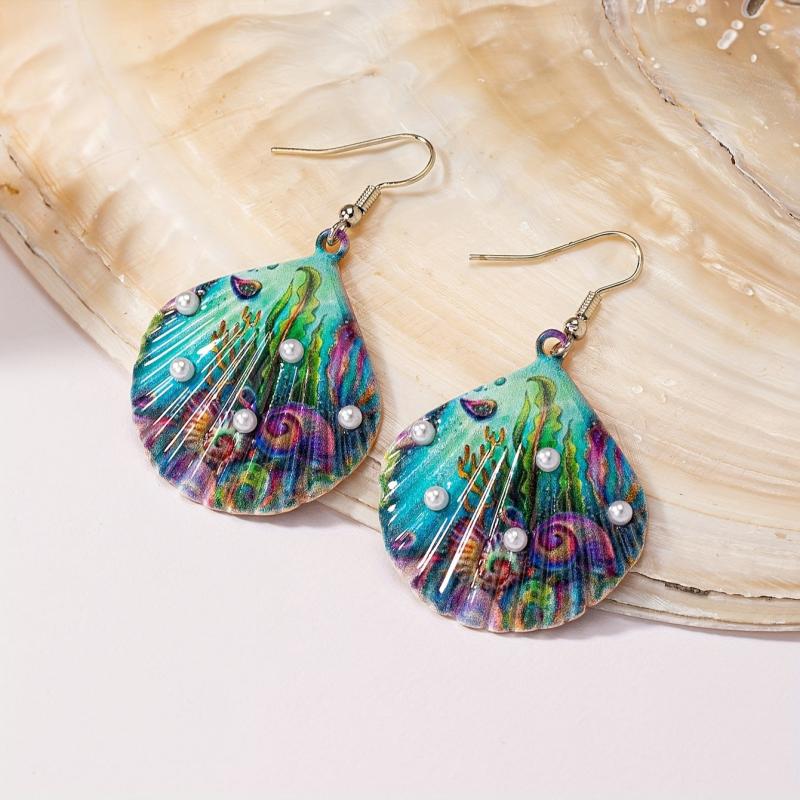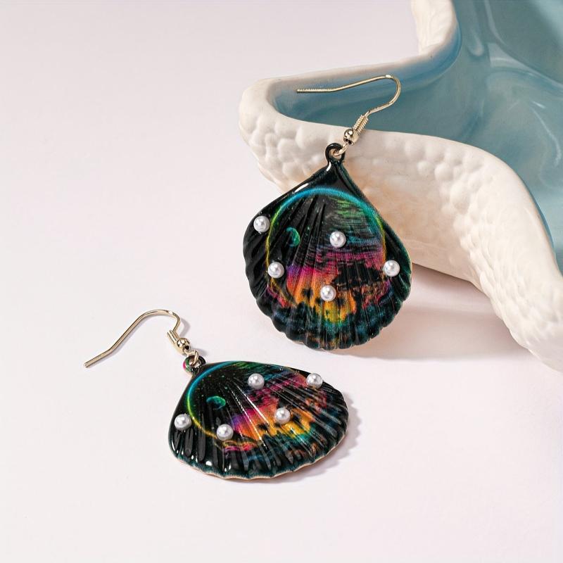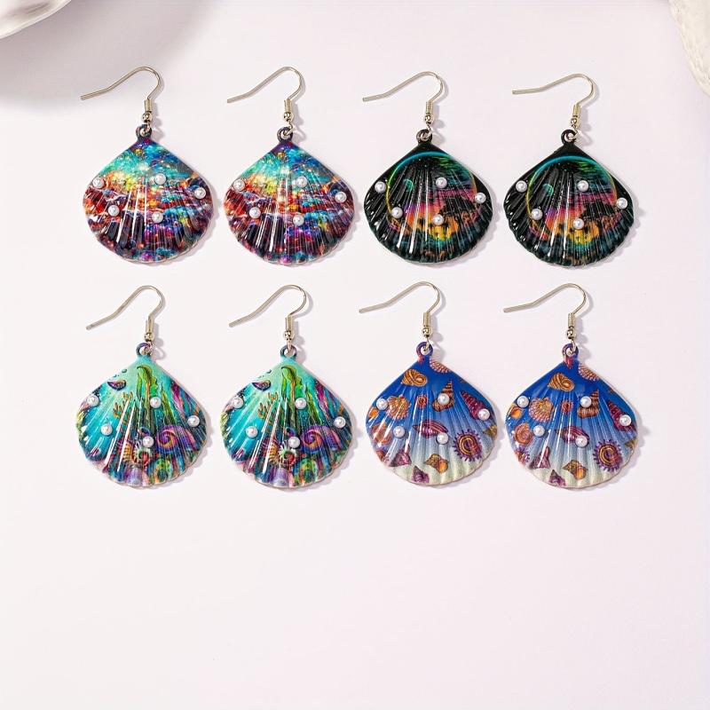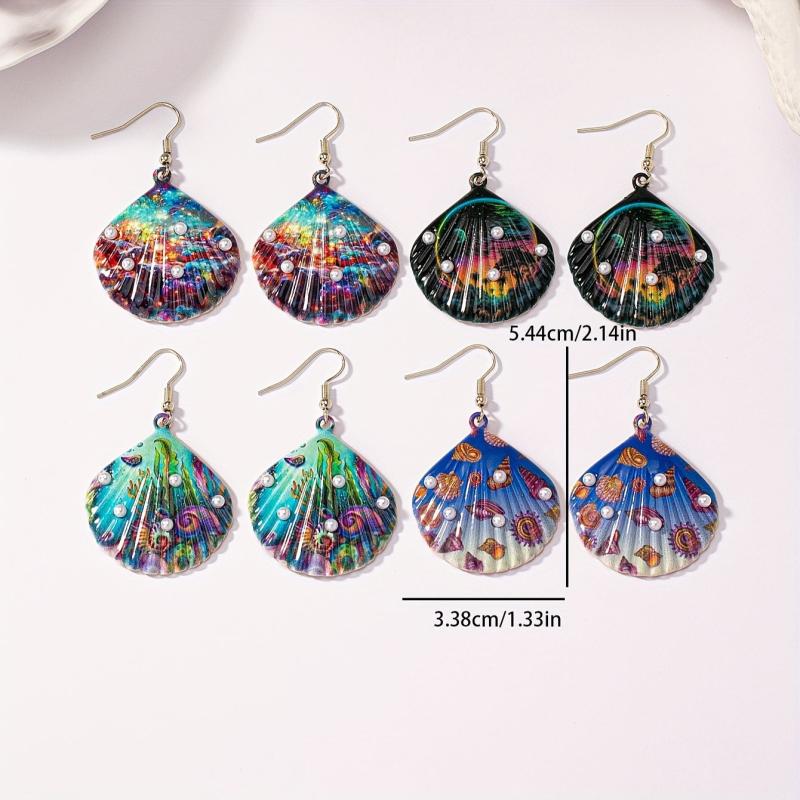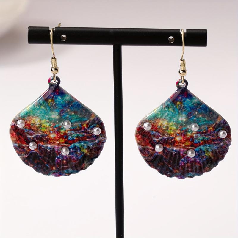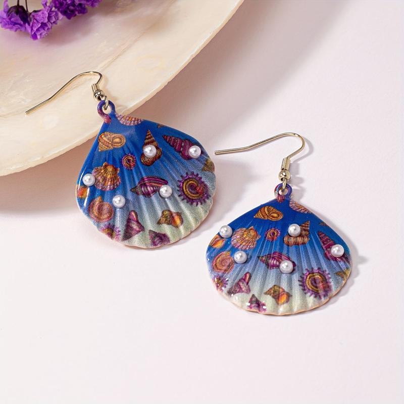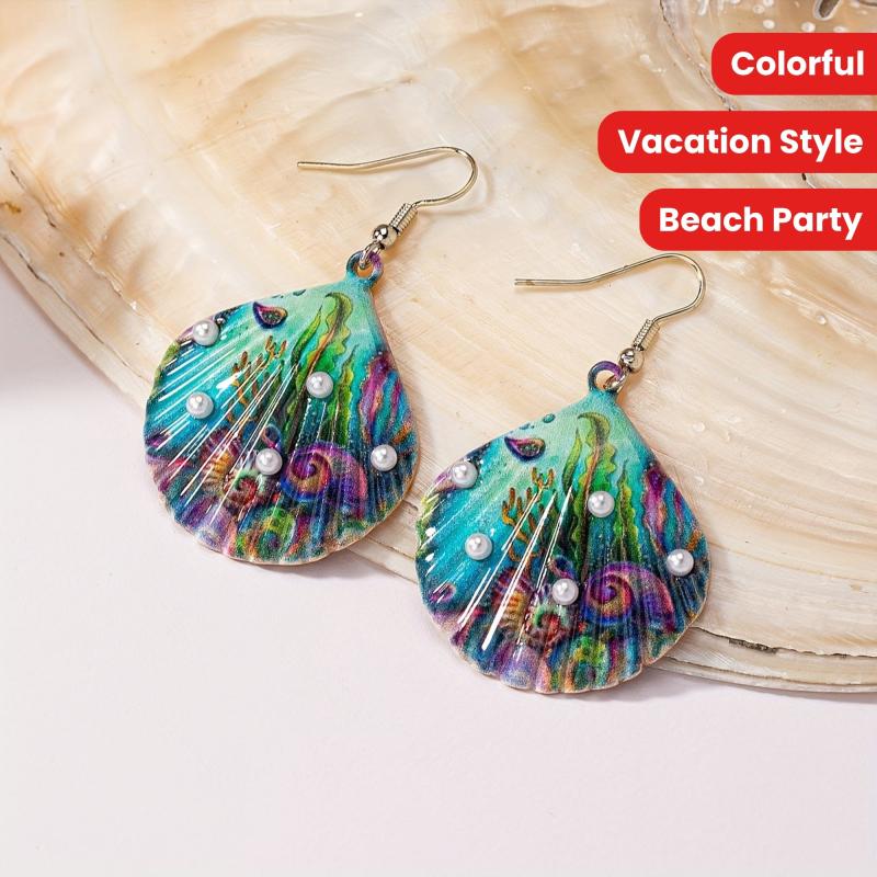 Colorful Ocean Shell Dangle Earrings Beach Party Jewelry