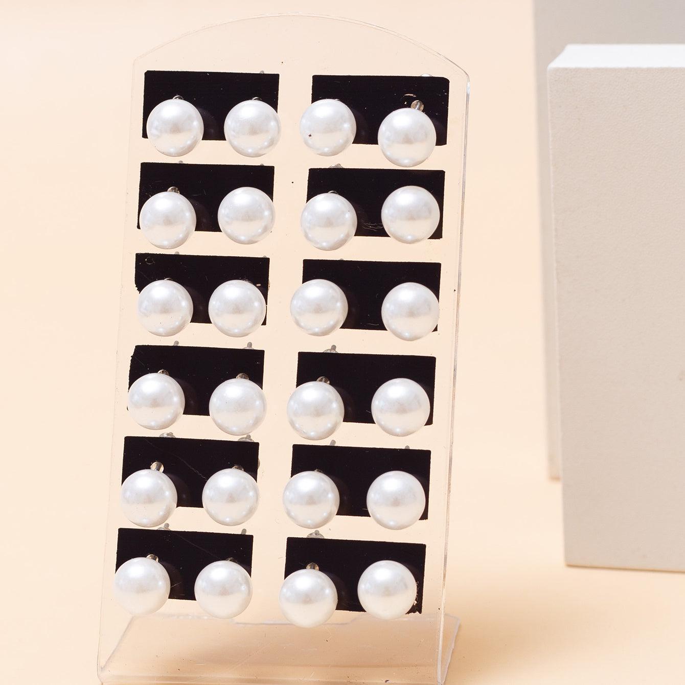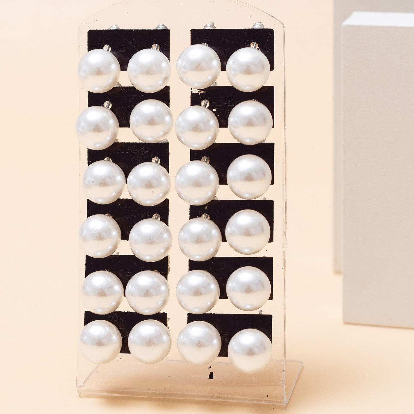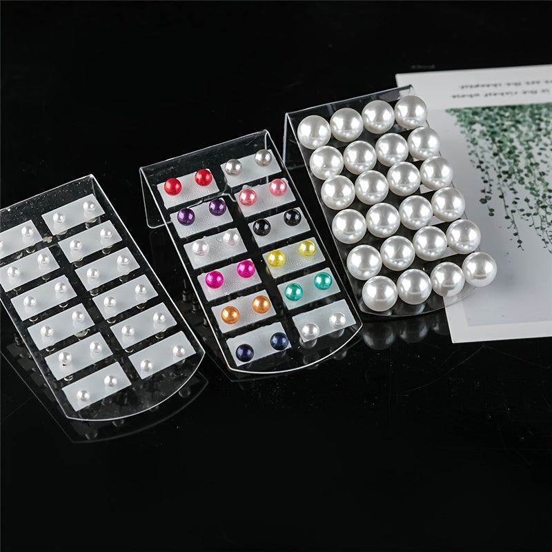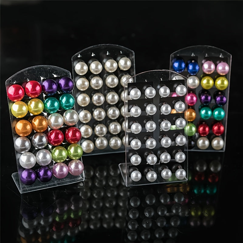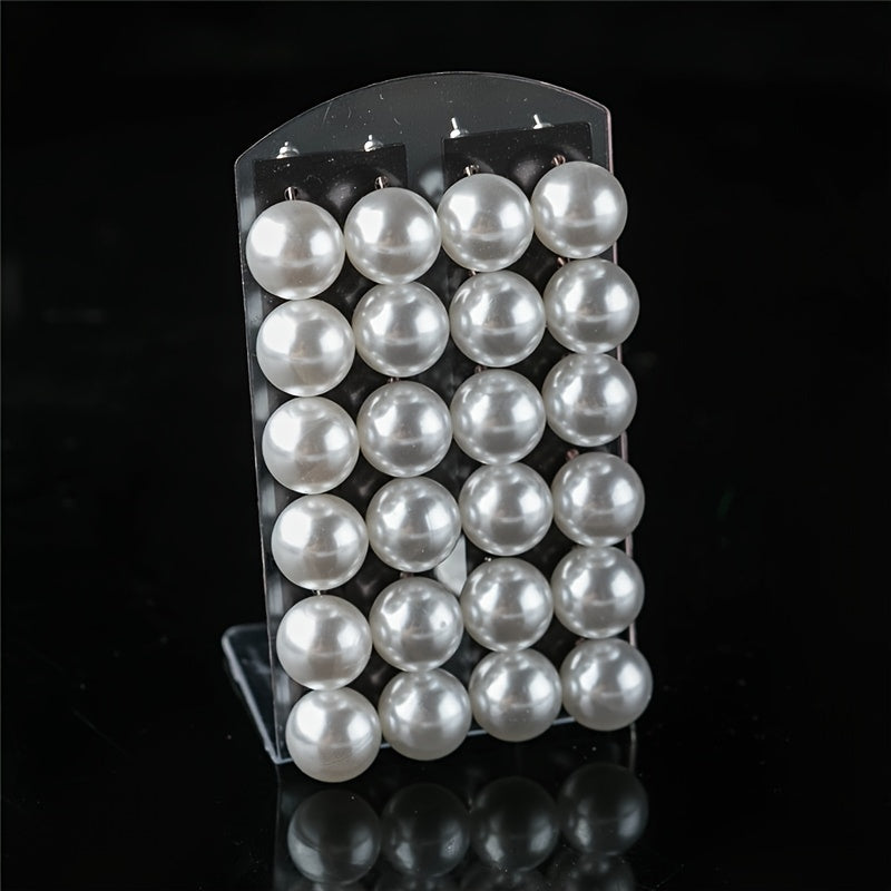 Enhance your look with this set of 12 pairs of colorful pearl stud earrings featuring various sizes of round ball earrings. Perfect for daily wear or special occasions.