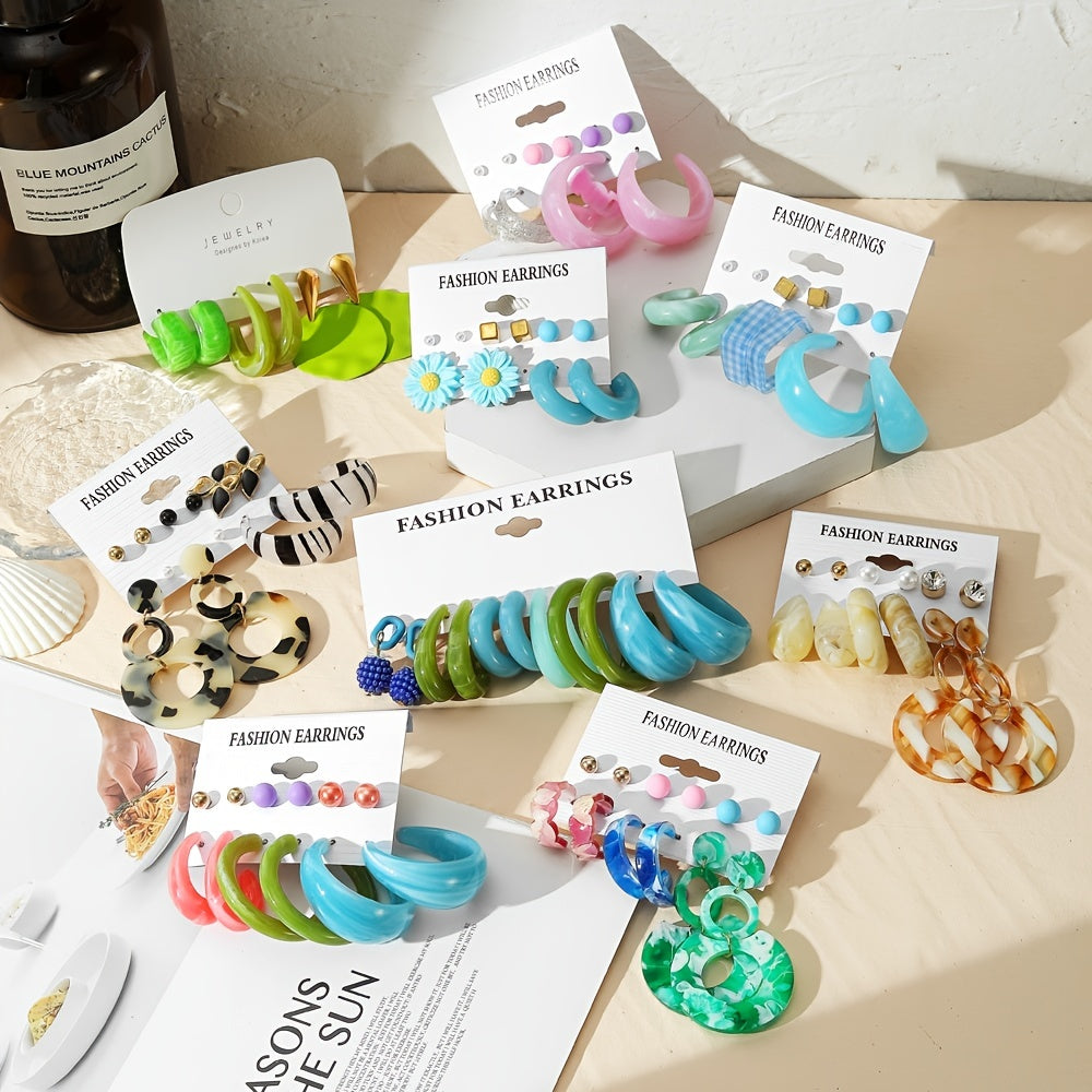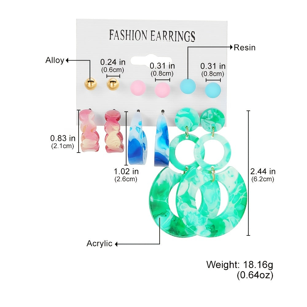Make a statement with this vibrant set of colorful resin earrings that will add a pop of color to any outfit. Perfect as a gift for women who love bold accessories.