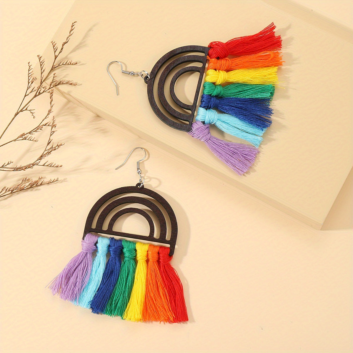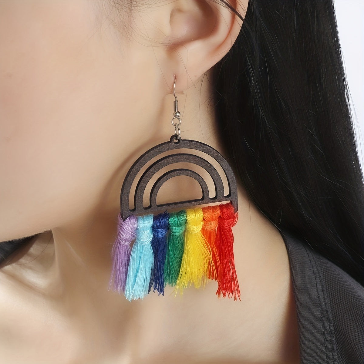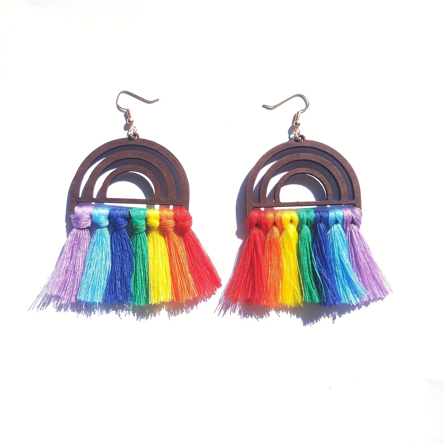 These beautiful earrings feature colorful threads and tassel dangles in a bohemian ethnic style. A perfect delicate gift for a female friend or loved one.
