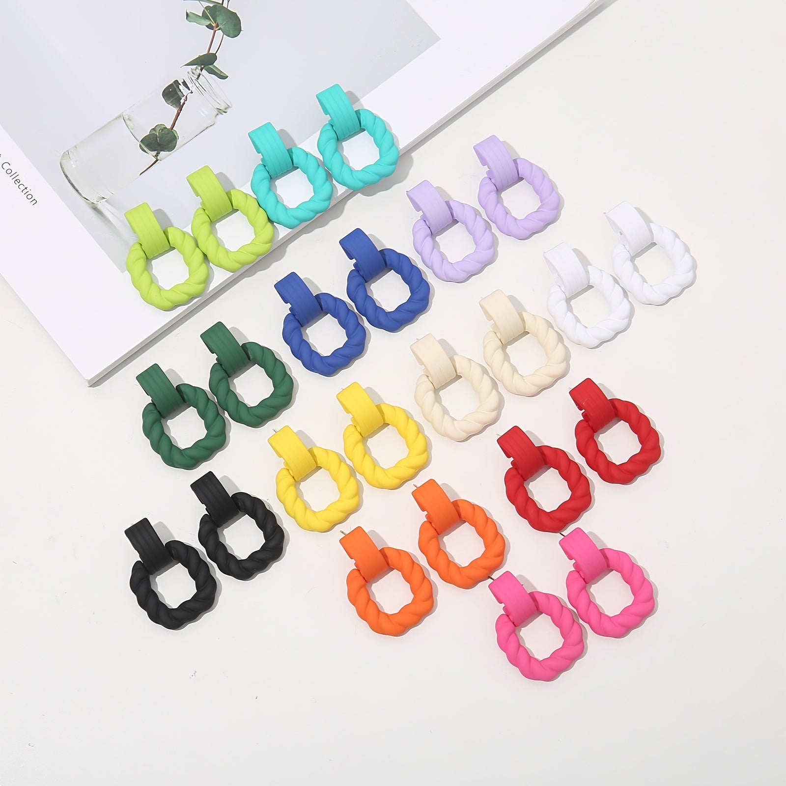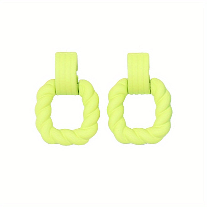 Add a pop of color to your summer holiday party look with these vibrant twist hoop earrings. These acrylic earrings are perfect for women and girls.