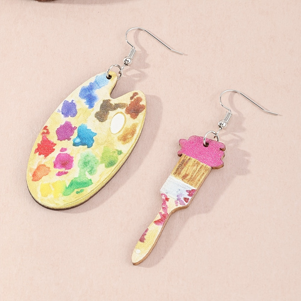 Add a pop of color to your outfit with these vibrant wooden paint drop earrings. Perfect for women, girls, and ladies who love unique jewelry pieces.