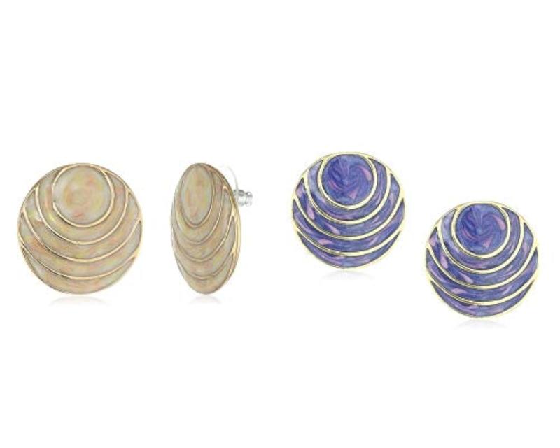 This combo includes stylish round stud earrings in beige and blue colors. They are perfect for adding a touch of elegance to your everyday look.