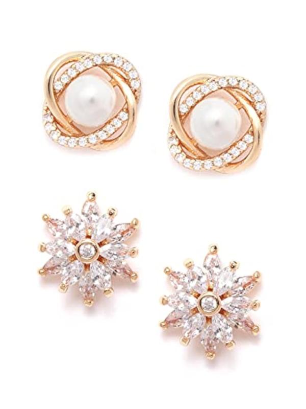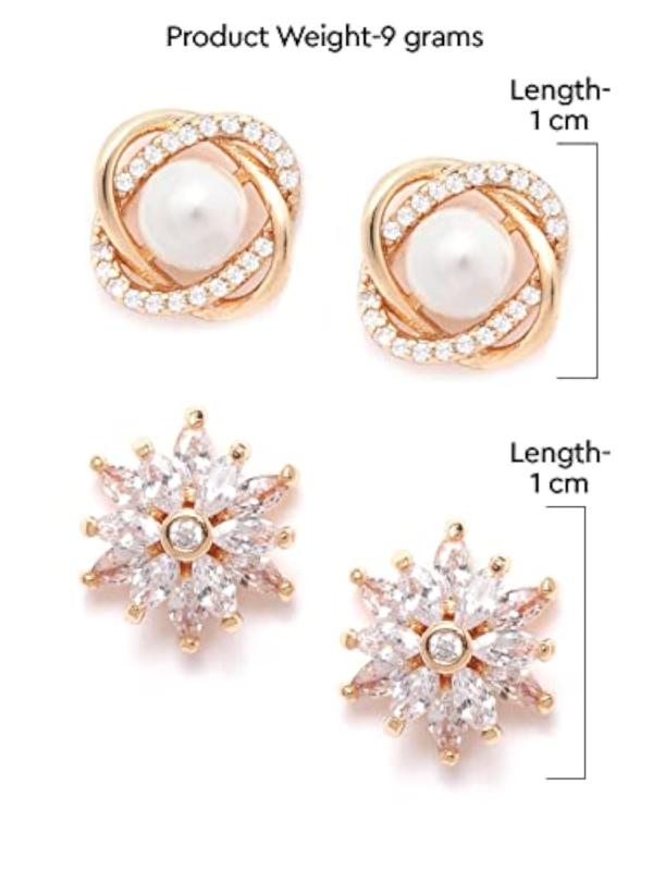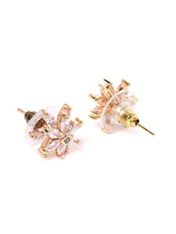 Add a touch of elegance with these contemporary brass stud earrings featuring CZ stones. Perfect for any occasion.