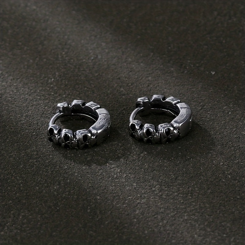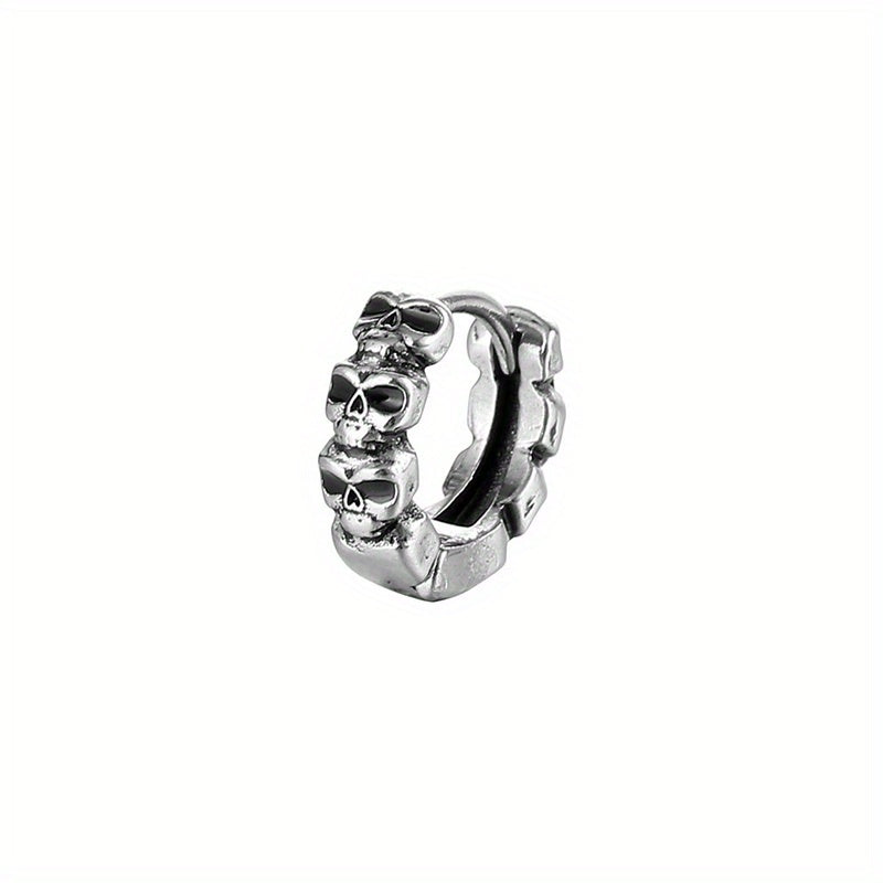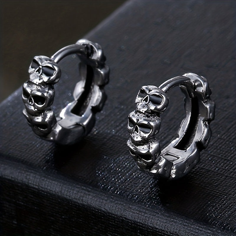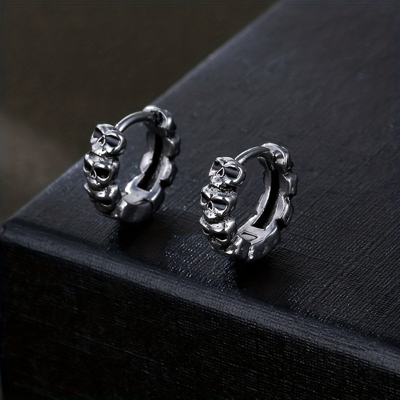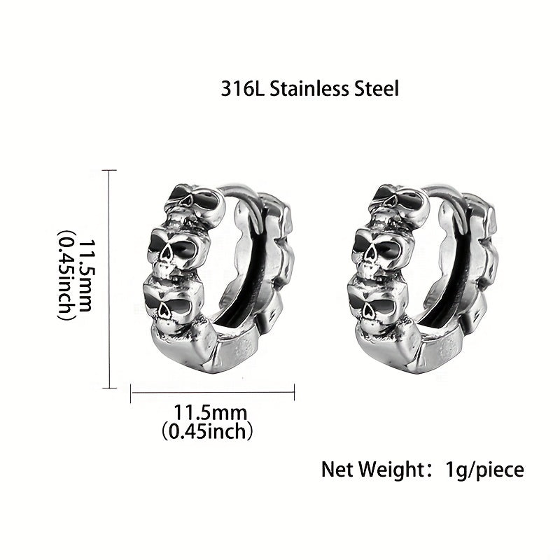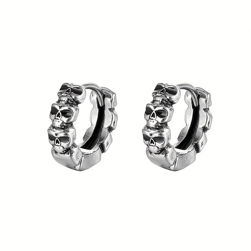 Elevate your style with these stylish silver stainless steel skull earrings. Perfect for men who appreciate bold and edgy jewelry.