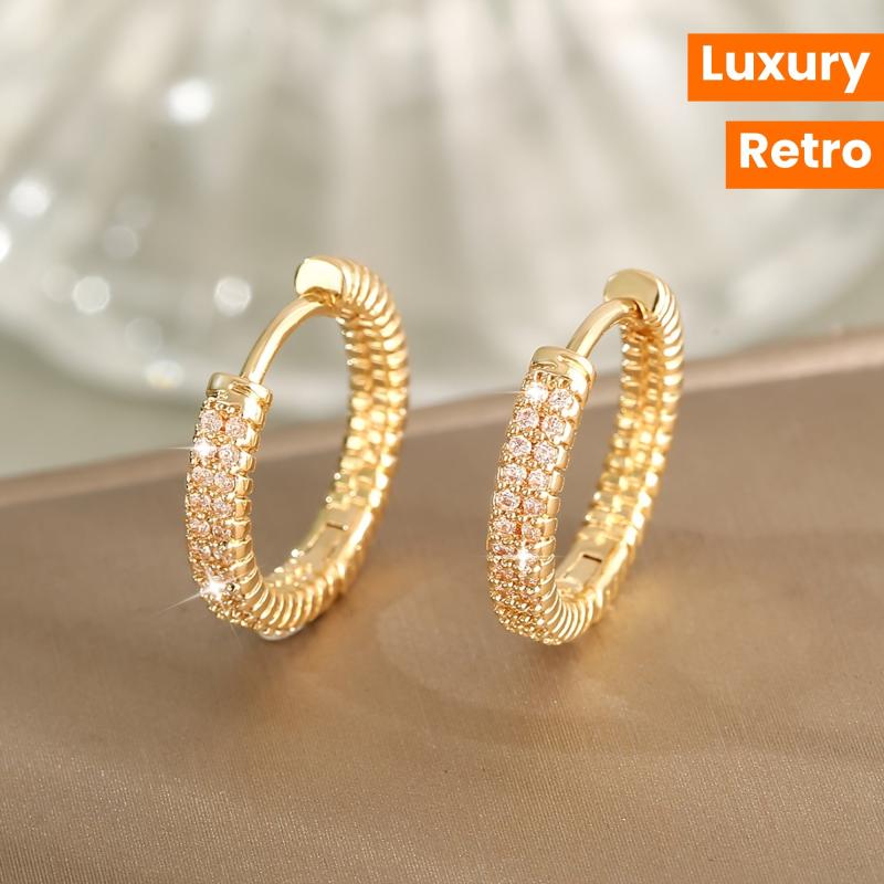 These copper hoop earrings with zirconia inlays are a perfect addition to your jewelry collection. The geometric round design gives them a retro vibe, making them ideal for dating and as a gift.