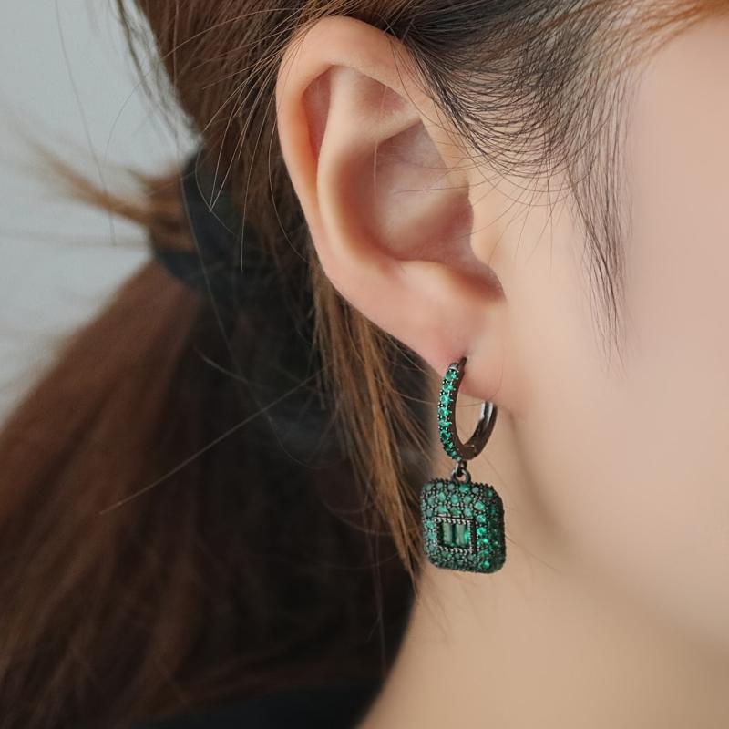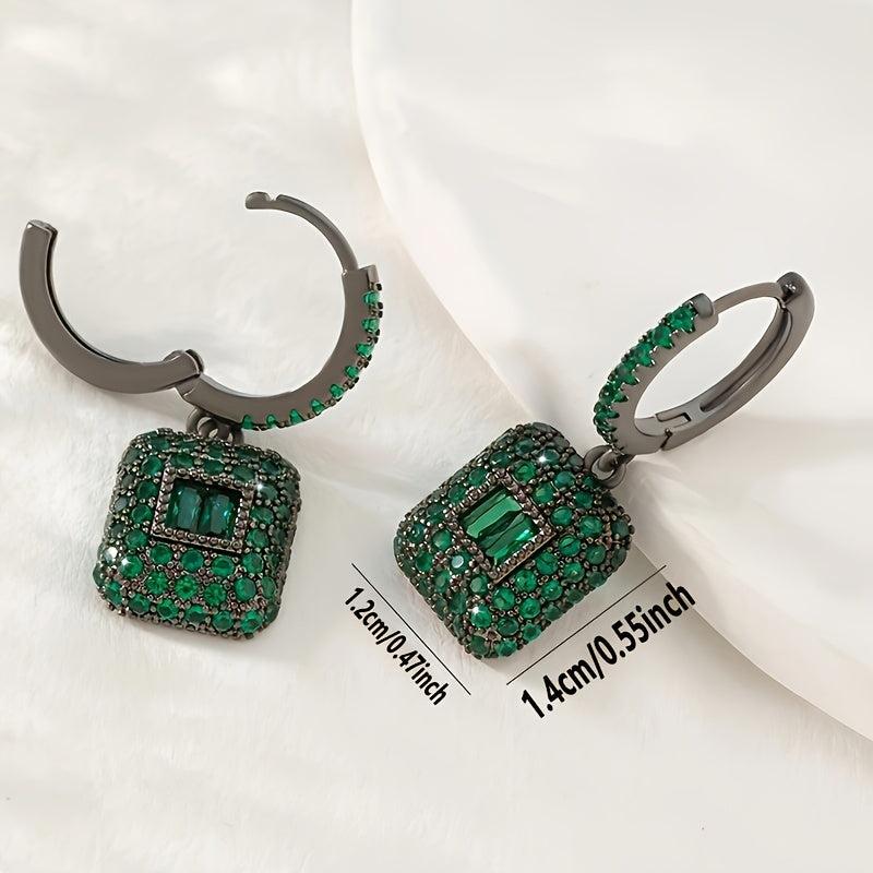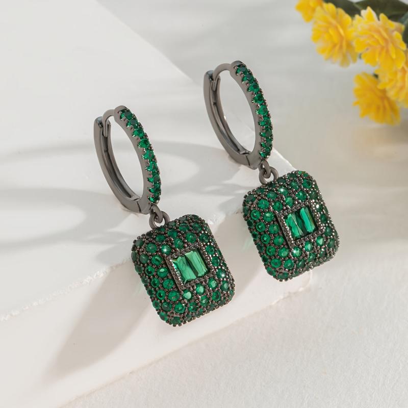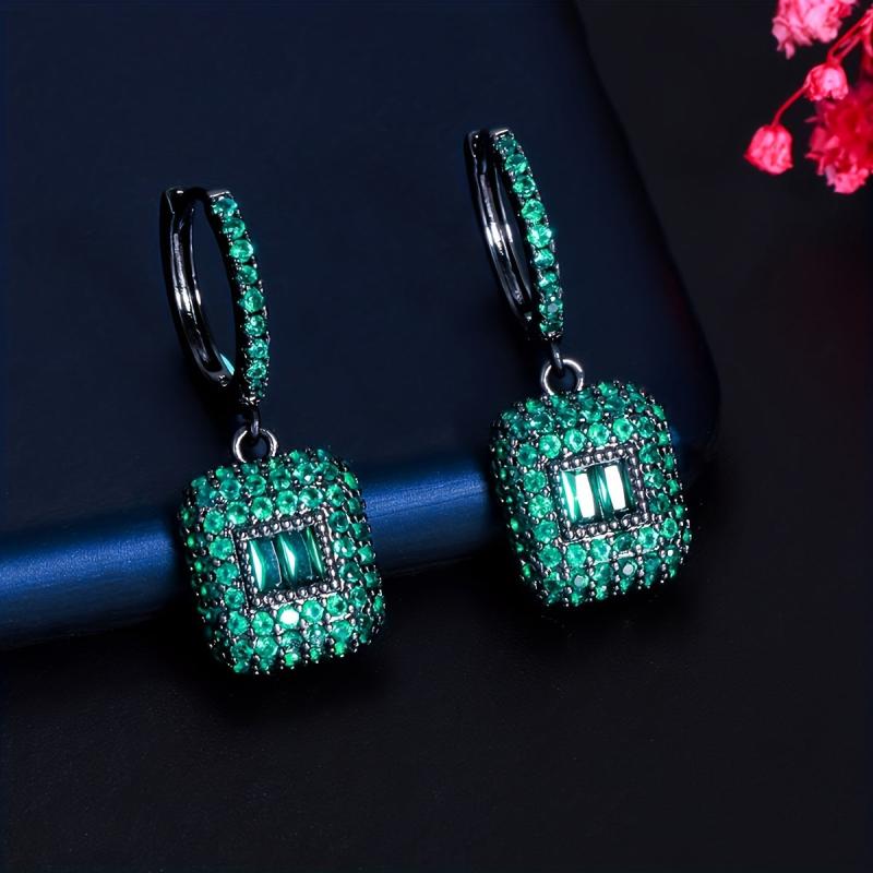 • Copper plated synthetic cubic zirconia green square pendant earrings