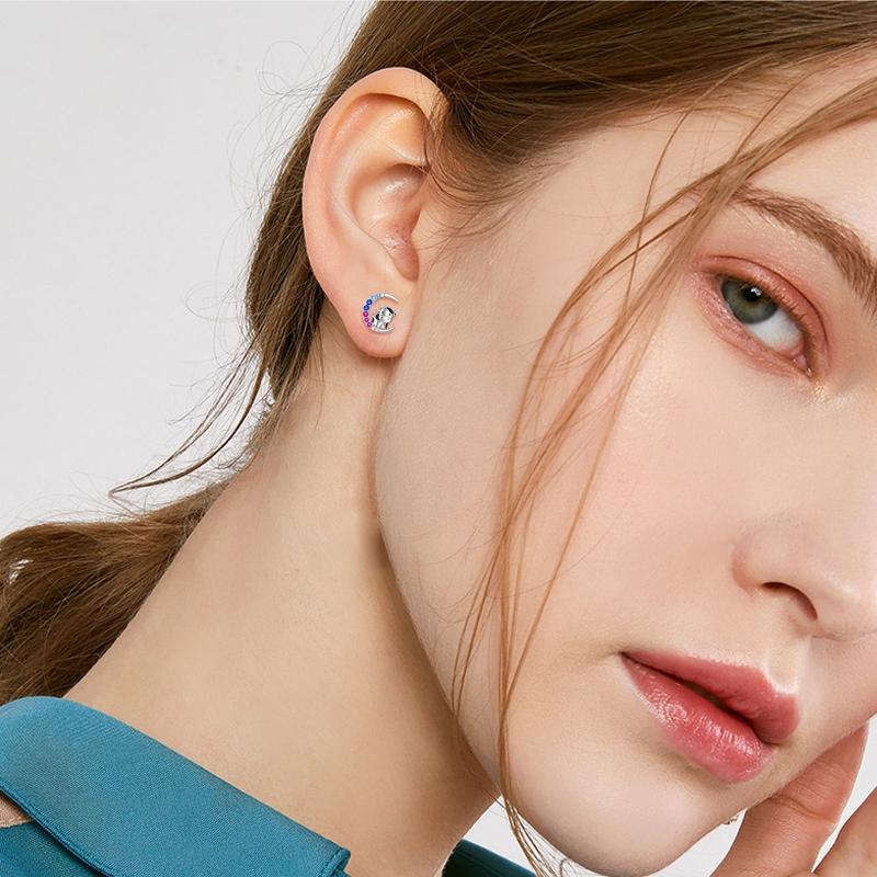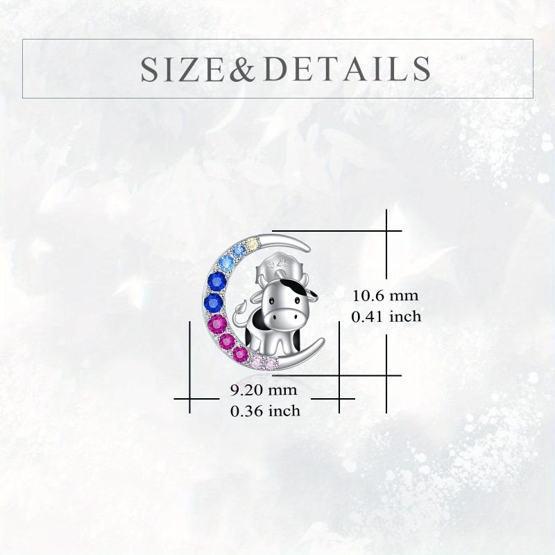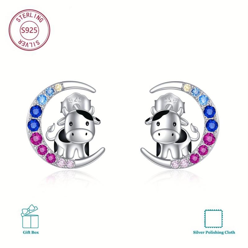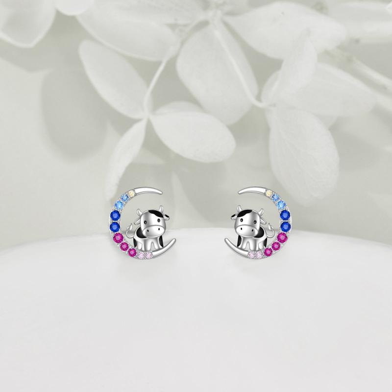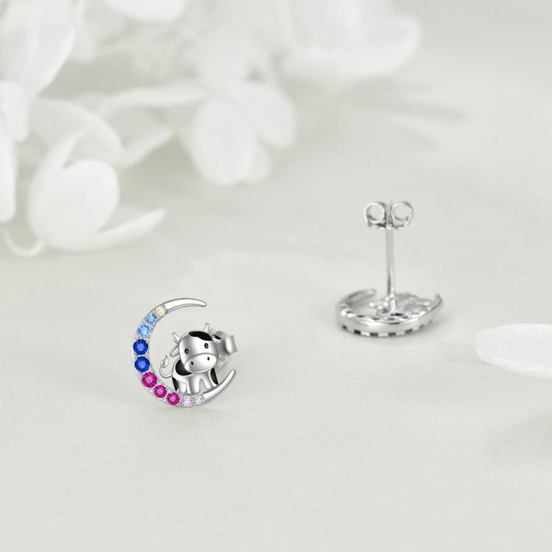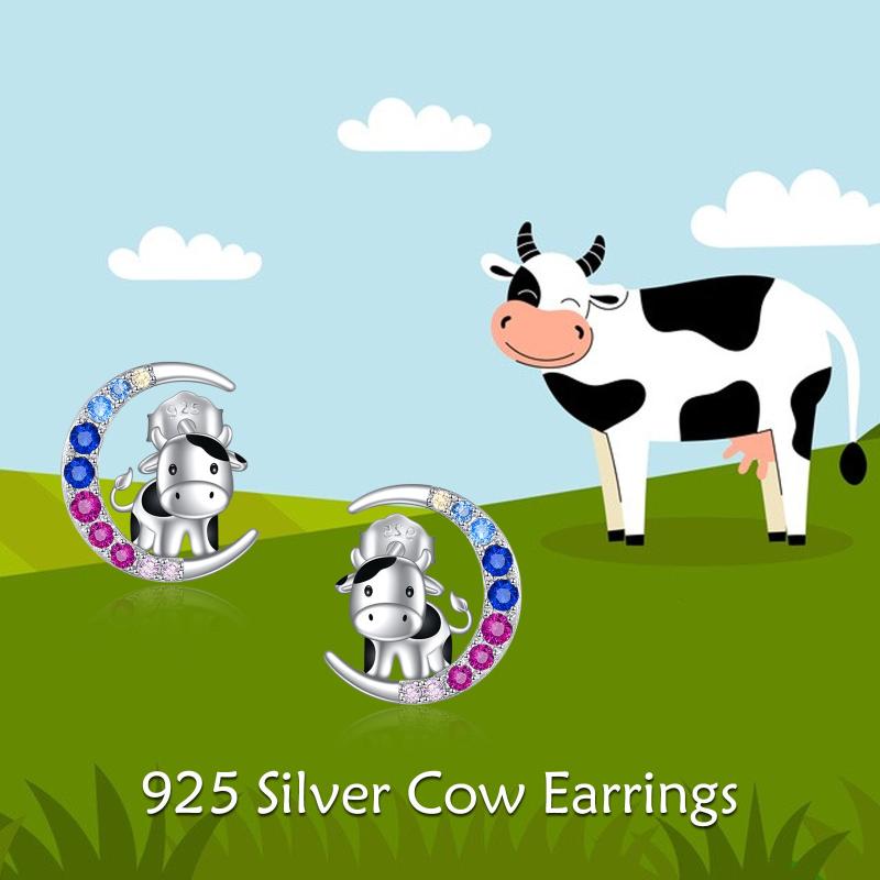 These sterling silver cow earrings feature a charming cow and moon design. Perfect for cow lovers, these studs are a delightful accessory.