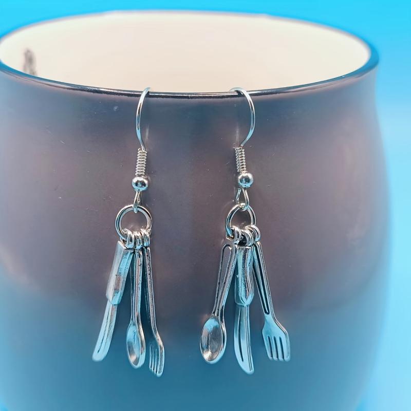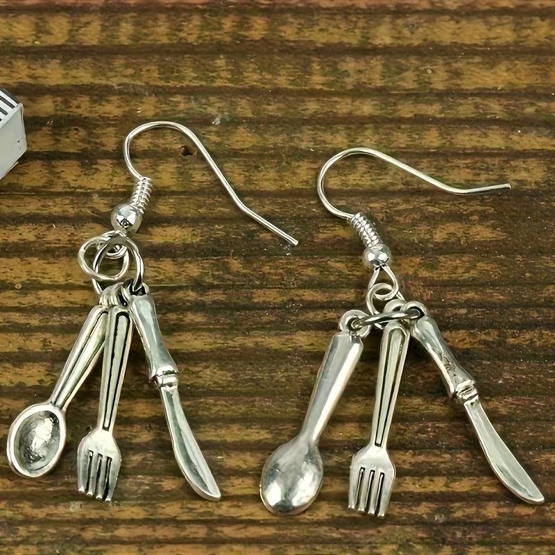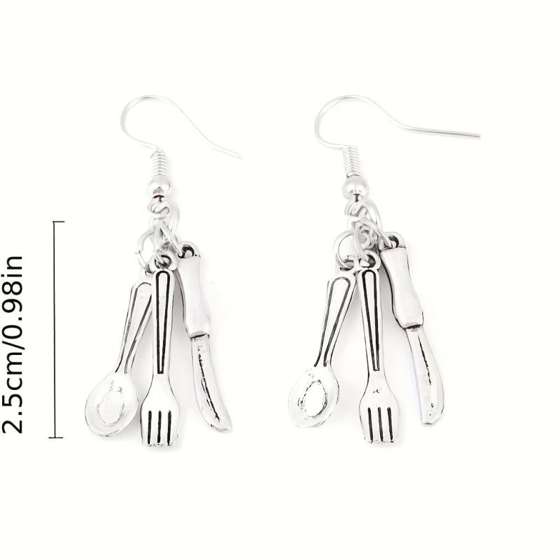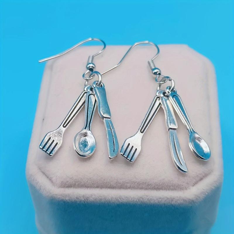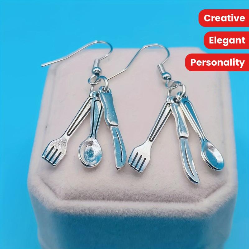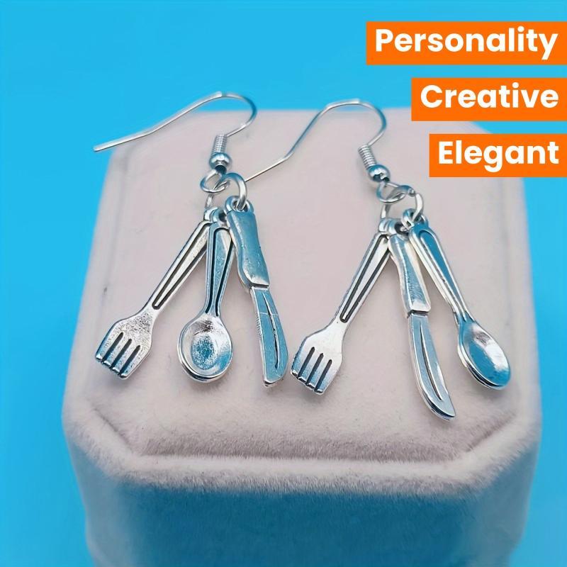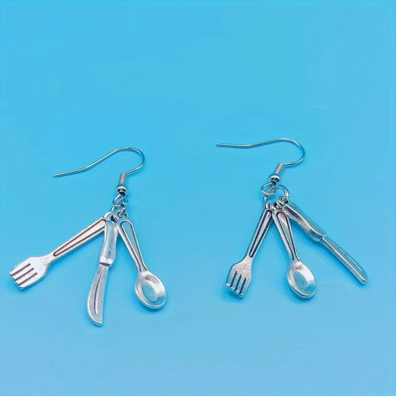 These unique fork and spoon inspired dangle earrings are perfect for adding a fun and stylish touch to your party outfits. Made of high-quality alloy material.
