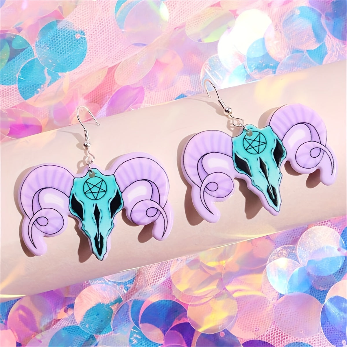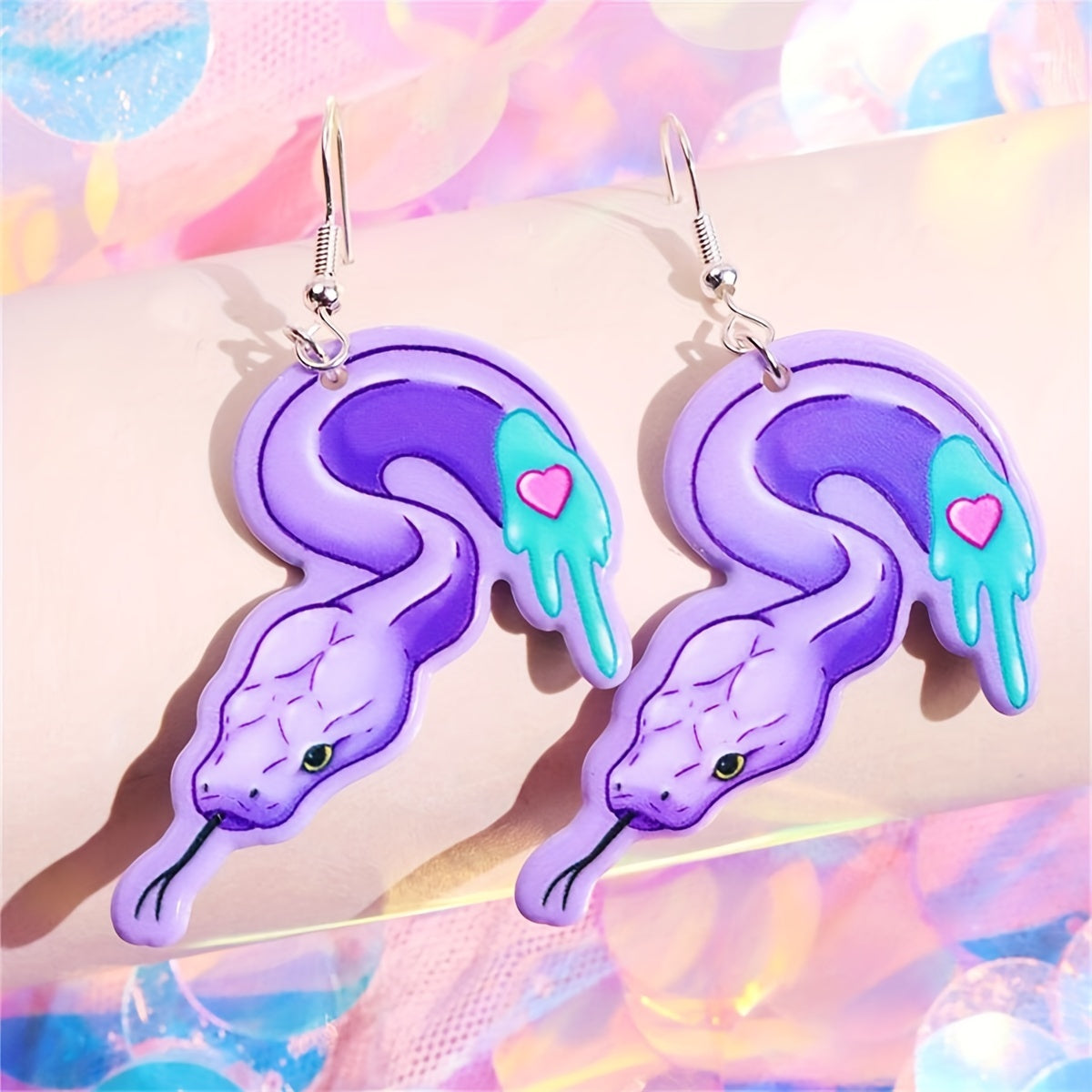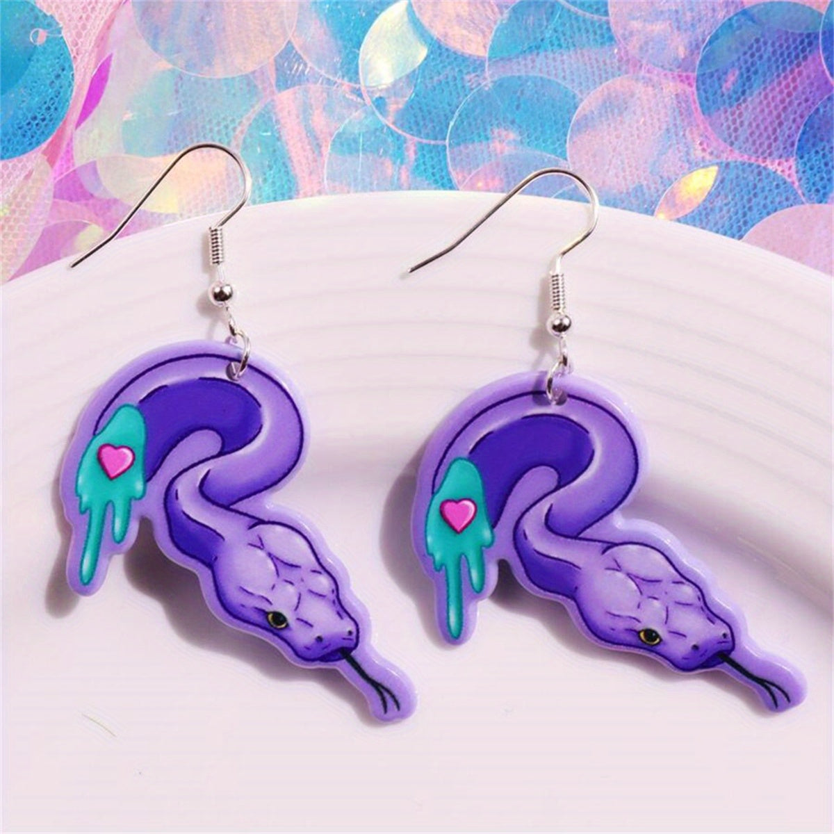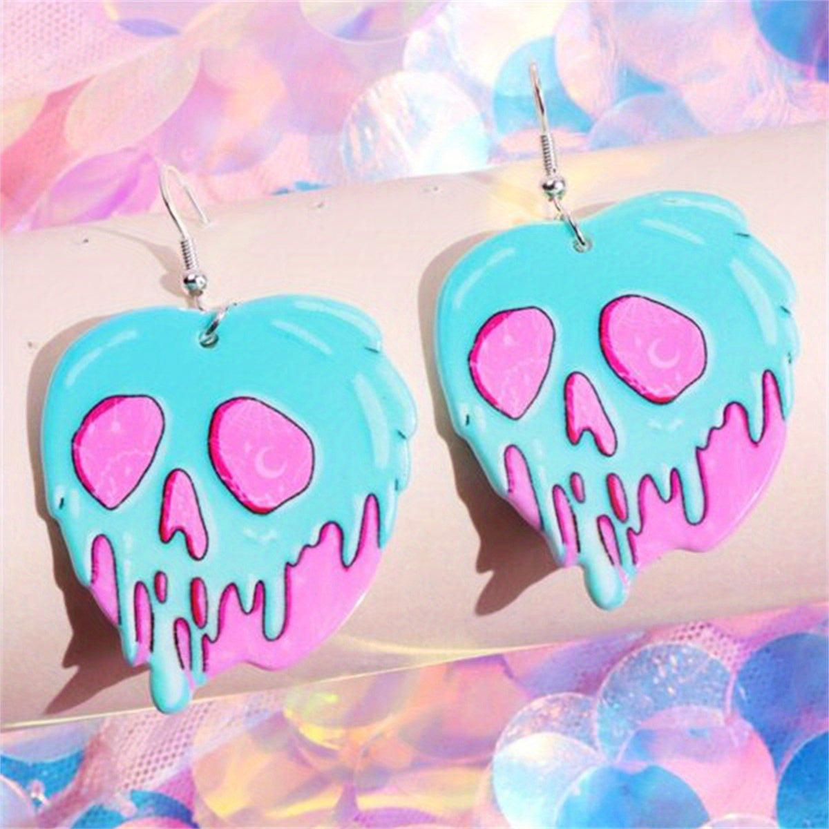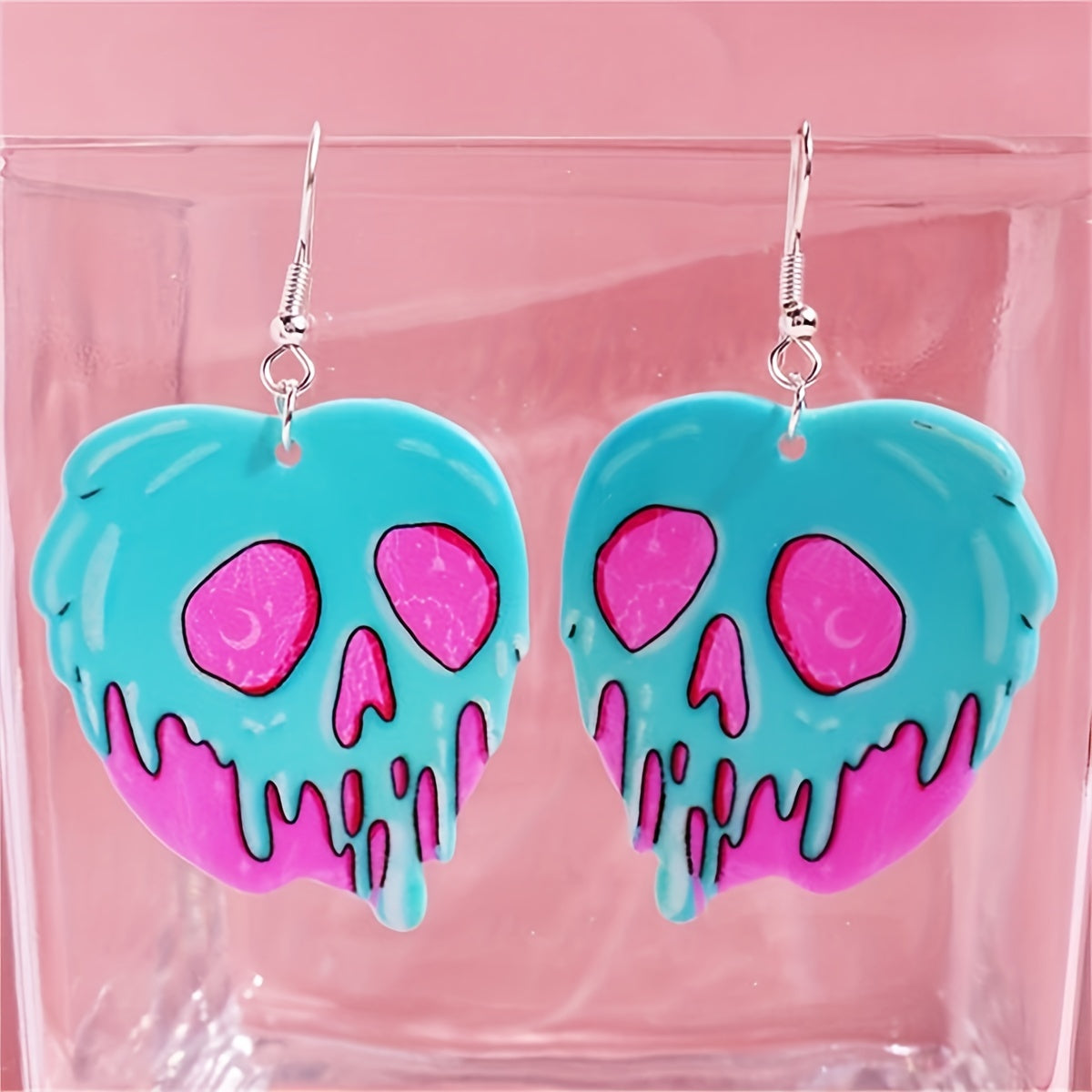 These Halloween-inspired dangle earrings feature an exaggerated design with a skull and snake motif. Perfect for adding a punk goth style to any outfit. Makes a great gift for females.