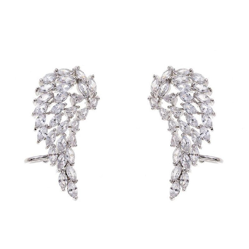 Beautiful marquise cut crystal angel wing feather climber earrings crafted in 925 silver plating for women. Perfect for parties and engagements.