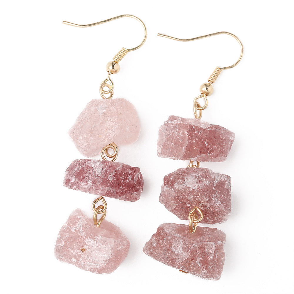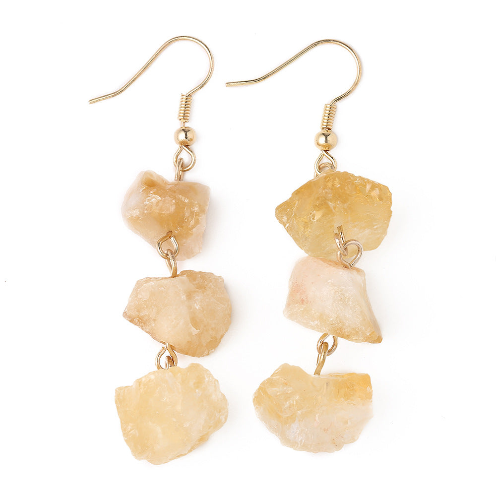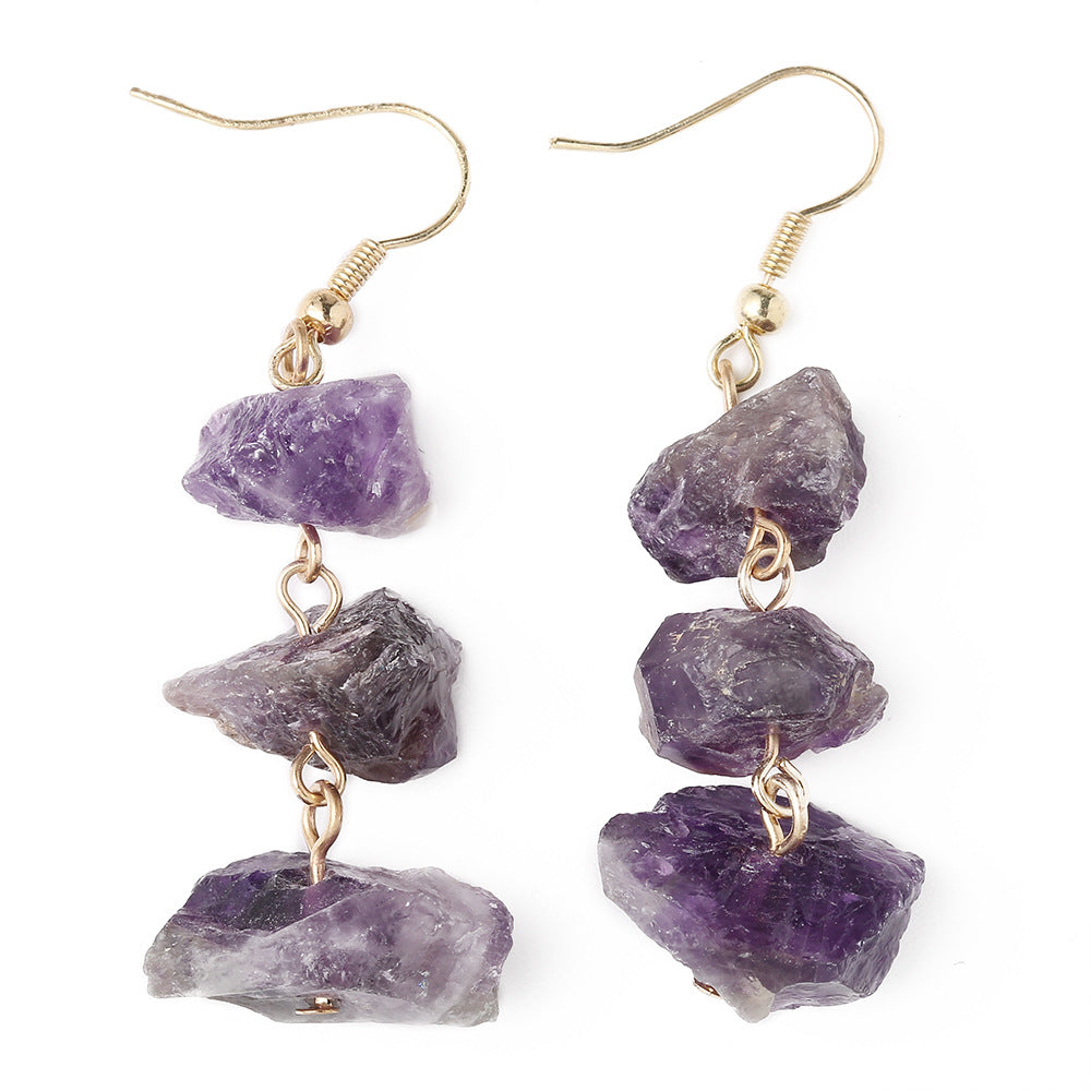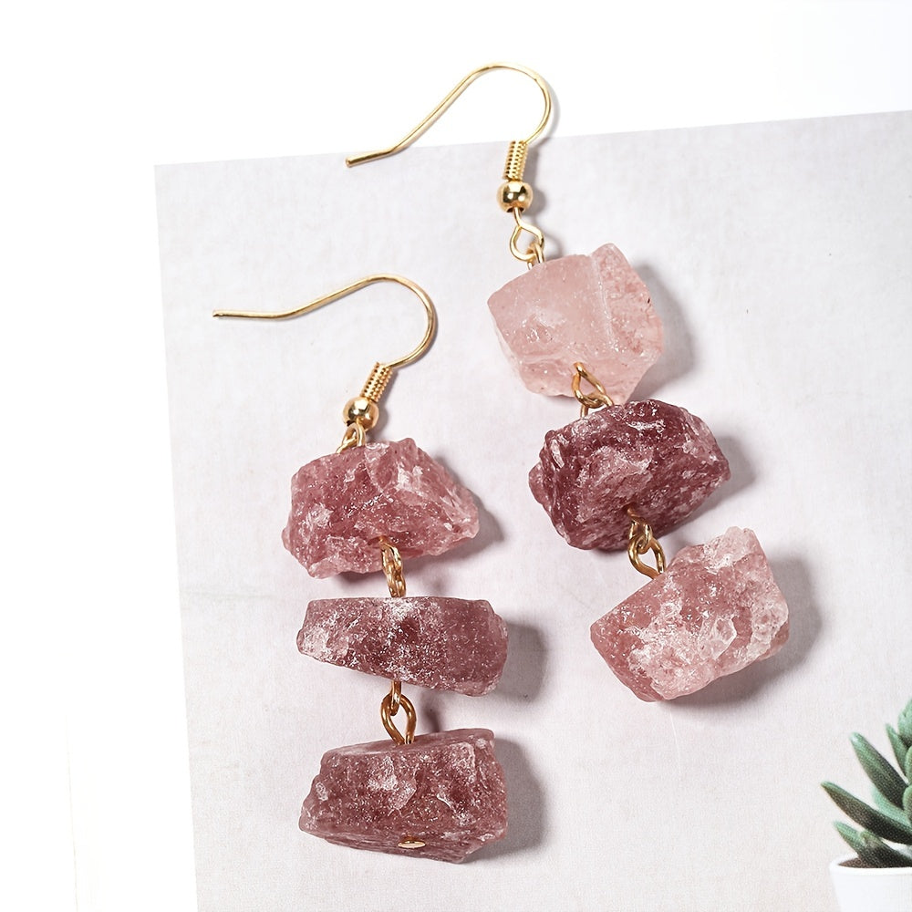 These earrings feature irregular crystal beads with colorful stone pendants for energy healing and anxiety relief.