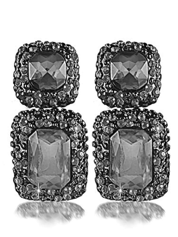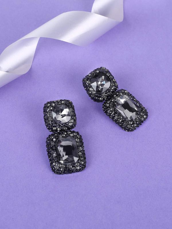 Elegant square crystal dangler earrings in beautiful copper finish.