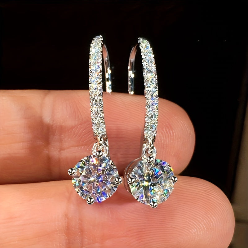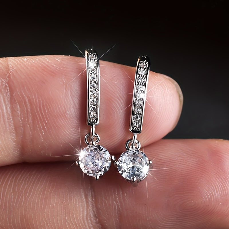 These elegant drop dangle hoop earrings feature sparkling crystals, perfect for weddings, anniversaries, proms, or as a fine gift for women.