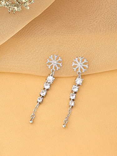 Elegant crystal danglers earrings with silver long chain dangler, perfect as a birthday or anniversary gift for your wife.