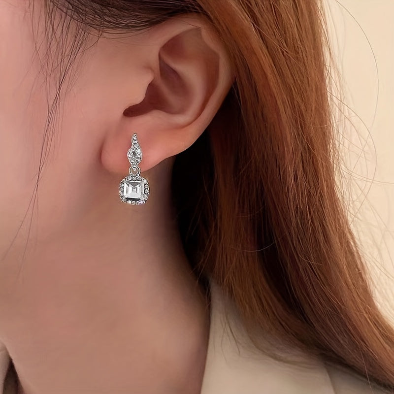 Add a touch of glamour with these golden and silvery artificial crystal dangle earrings. Perfect for a retro bling bling look, made of high-quality alloy material. Ideal gift for a special lady in your life.