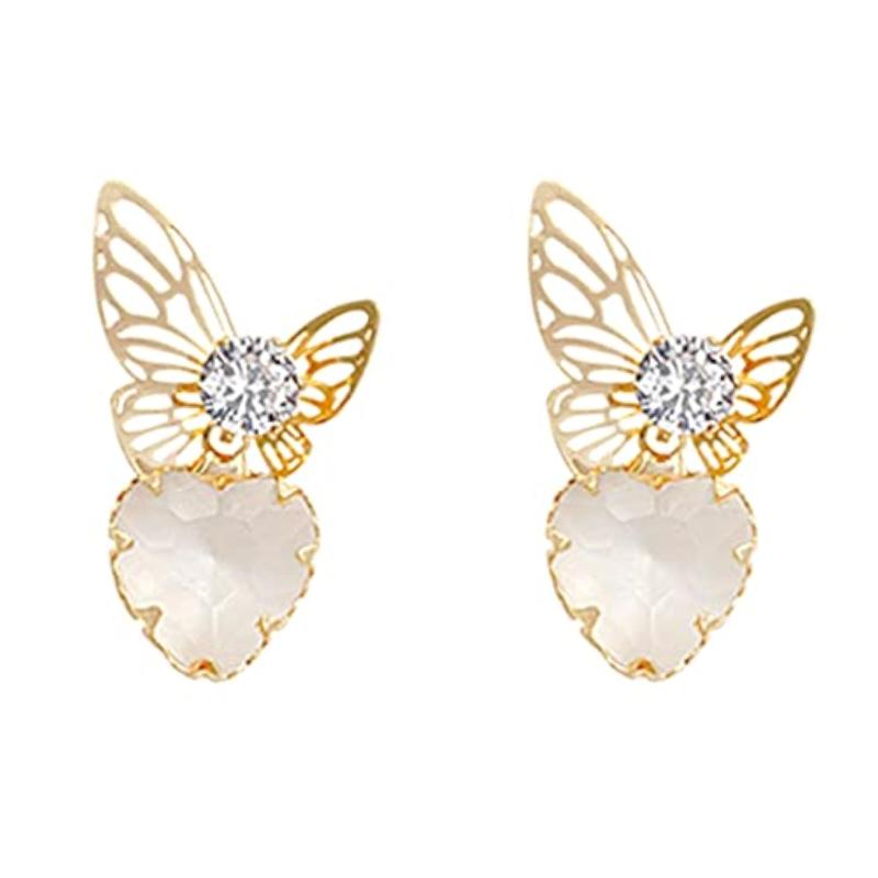 These elegant crystal drop earrings are perfect for girls, women, and wives. They feature a butterfly and heart design, making them ideal for birthdays and anniversaries.